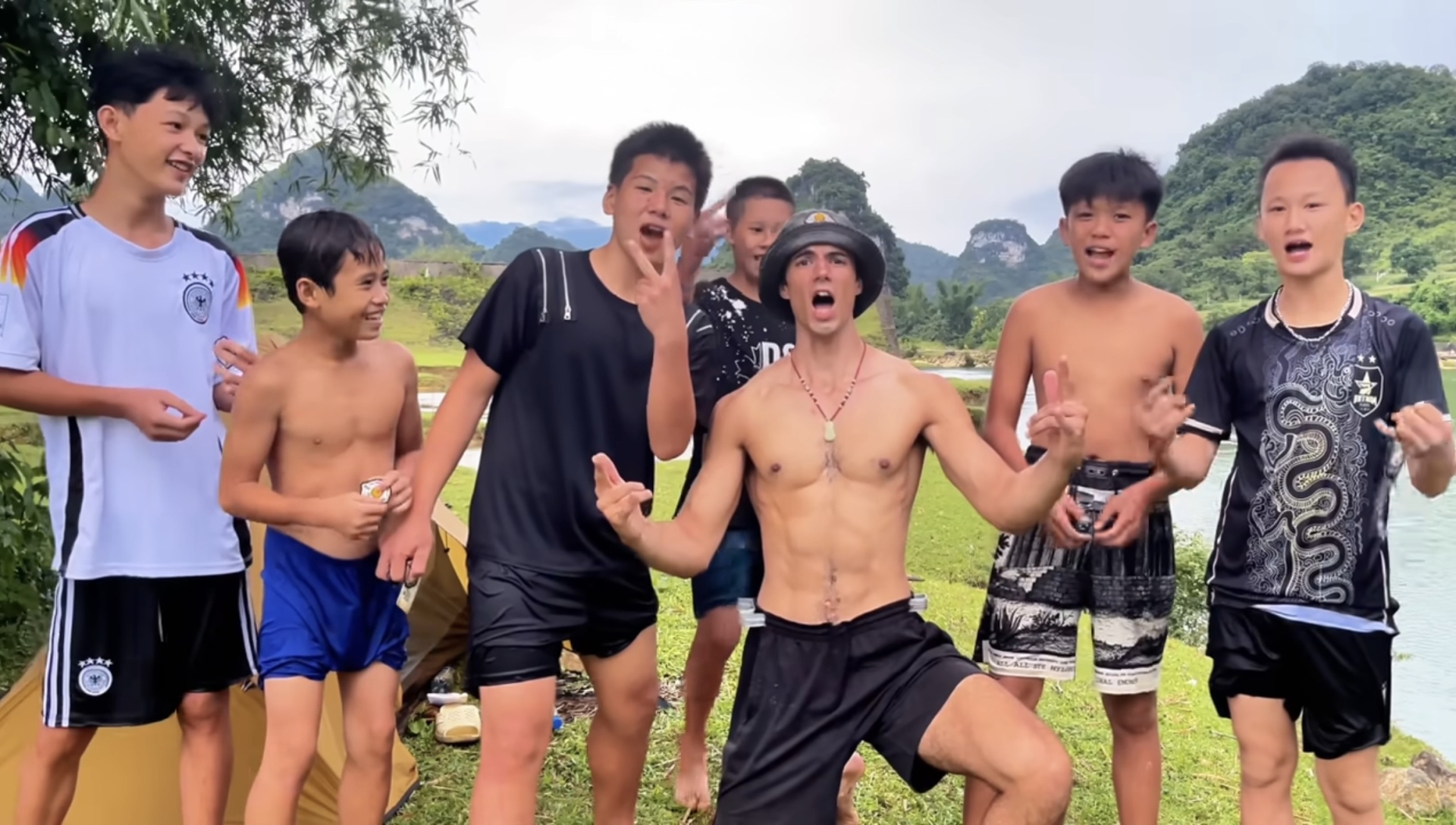 Sự việc diễn ra khi nam du khách đang chật vật mang vác khối hành lý cồng kềnh tìm cách vượt qua một con suối lớn. Giữa địa hình đá trơn trượt và thời tiết khắc nghiệt sự xuất hiện của những đứa trẻ địa phương như một chiếc phao cứu sinh. Không cần ai nhờ vả đám trẻ lập tức xúm lại chủ động hỗ trợ vị khách lạ mặt một tay đưa đồ đạc qua bờ an toàn.
