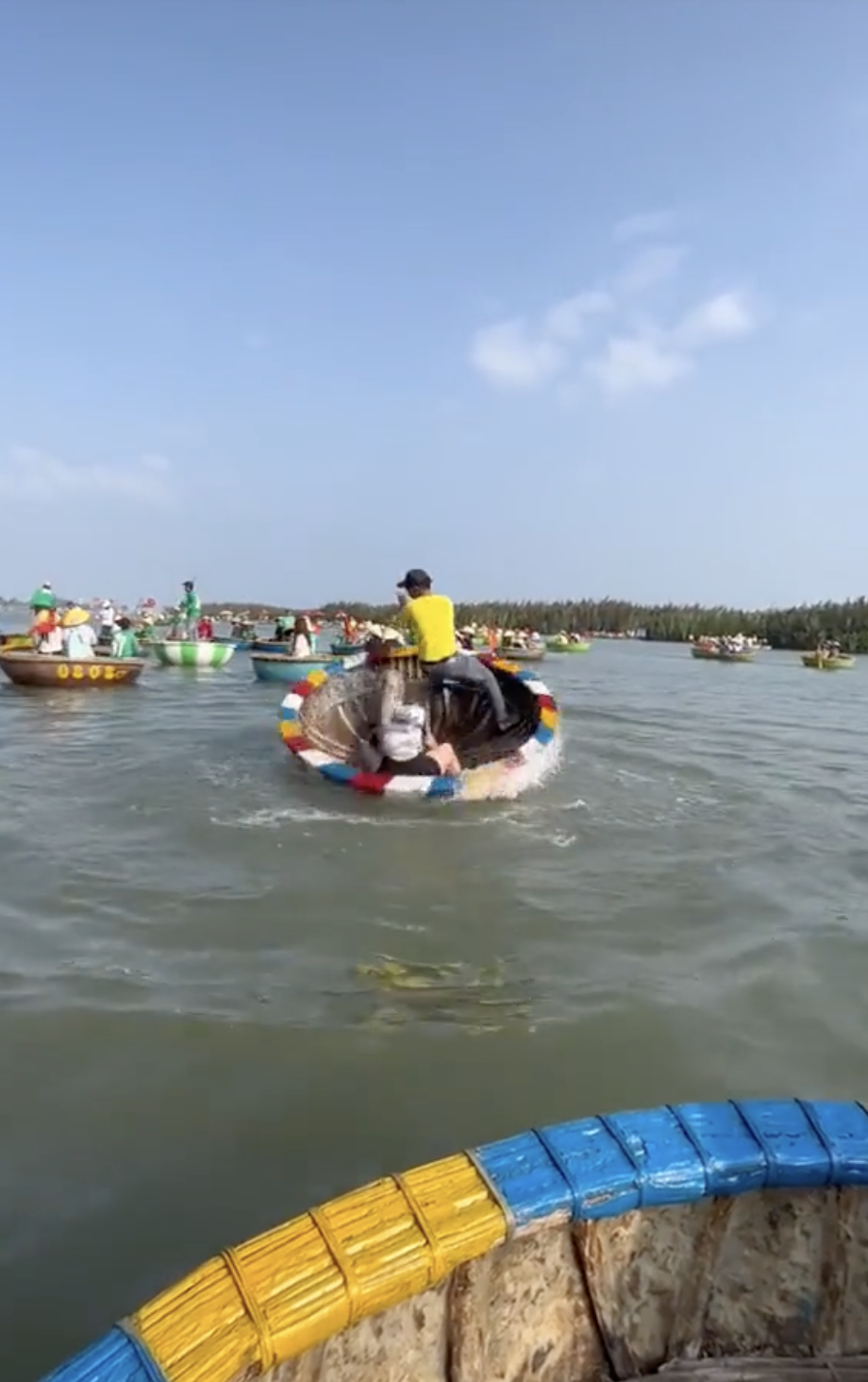 Khoảnh khắc chơi thuyền thúng được một cặp khách Tây chia sẻ đã nhanh chóng thu hút sự chú ý của nhiều người. Với dòng trạng thái đầy hào hứng khẳng định đây là buổi hẹn hò nhất định phải thử khi đến Việt Nam, đoạn clip ghi lại cảnh cặp đôi cùng người chèo thuyền thực hiện màn múa thúng đặc trưng. Giữa sông, chiếc thuyền thúng vốn đơn sơ bỗng quay liên tục trên mặt nước, đây là một kỹ thuật điêu luyện của người dân địa phương khi dùng mái chèo đẩy mạnh, tận dụng lực quán tính để chiếc thúng xoay tròn đều với tốc độ nhanh dần.