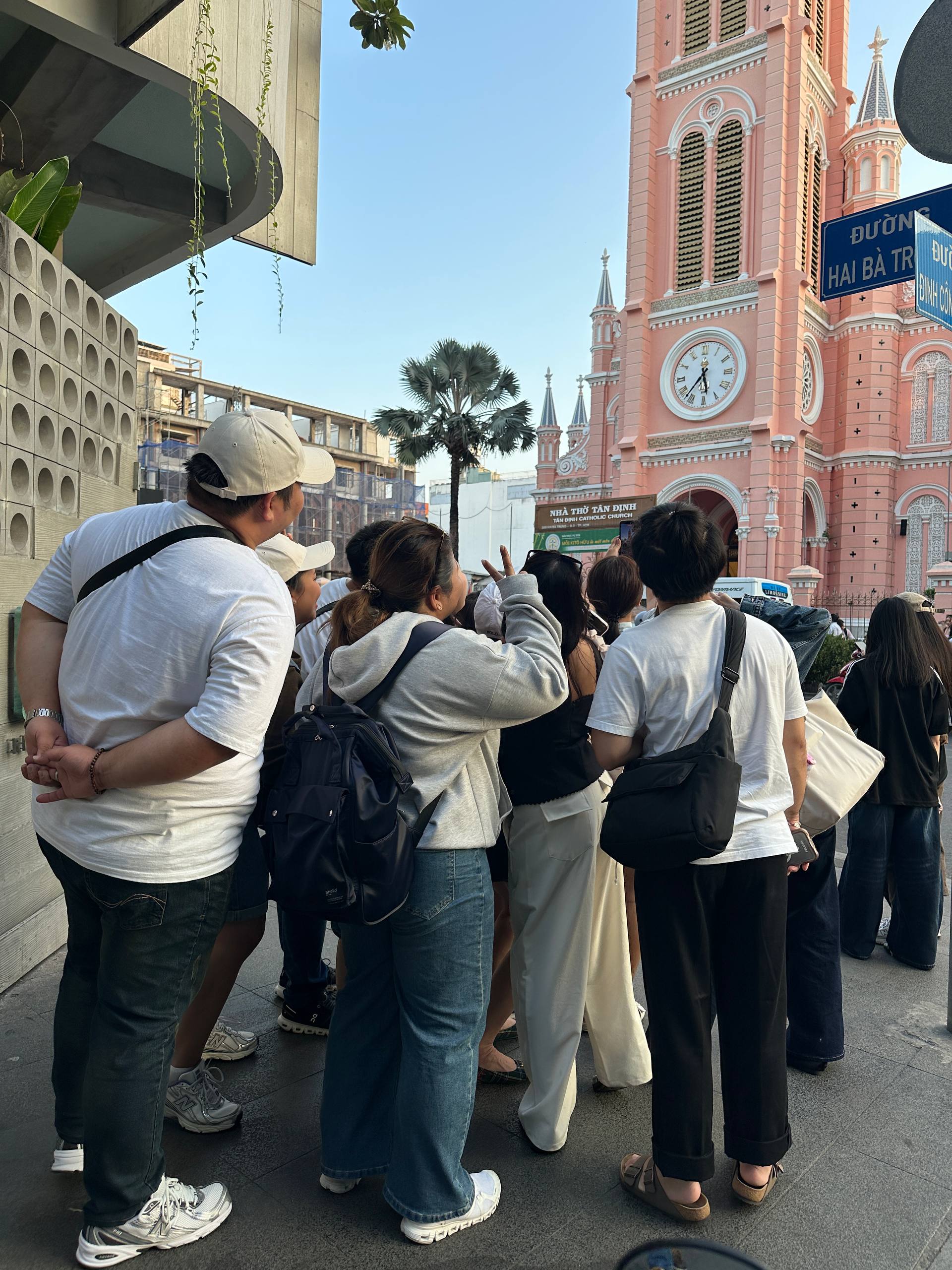 Ghi nhận thực tế vào một buổi chiều cuối tuần khi mặt trời bắt đầu dịu nắng một đoàn khách du lịch Thái Lan gồm hơn 10 người đã dừng chân trước khuôn viên nhà thờ. Giữa dòng xe cộ hối hả đặc trưng của đường Hai Bà Trưng họ nhanh chóng bị thu hút bởi màu sắc rực rỡ của công trình. Các thành viên trong đoàn liên tục thay phiên nhau tạo dáng chụp ảnh dưới nhiều góc khác nhau. Một số người còn sử dụng điện thoại để quay video ghi lại khoảnh khắc hoàng hôn buông xuống phía sau nền kiến trúc màu hồng nổi bật. Nhiều người trong đoàn chia sẻ rằng họ đã biết đến địa điểm này thông qua mạng xã hội và coi đây là mục tiêu hàng đầu khi đến Việt Nam.