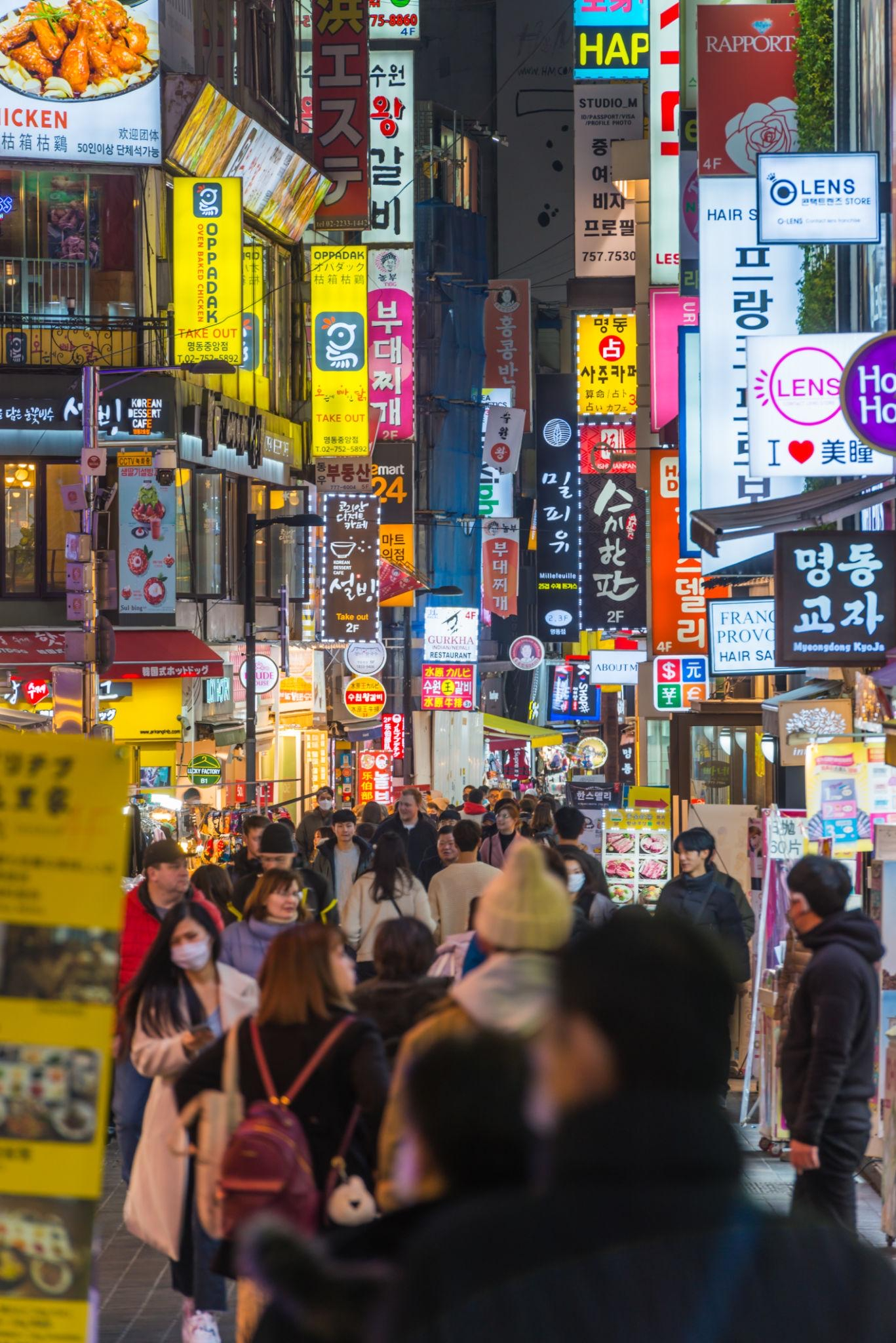 Các khu phố như Myeongdong , Hongdae hay Gangnam thường xuyên xuất hiện trong các video du lịch trên mạng xã hội.