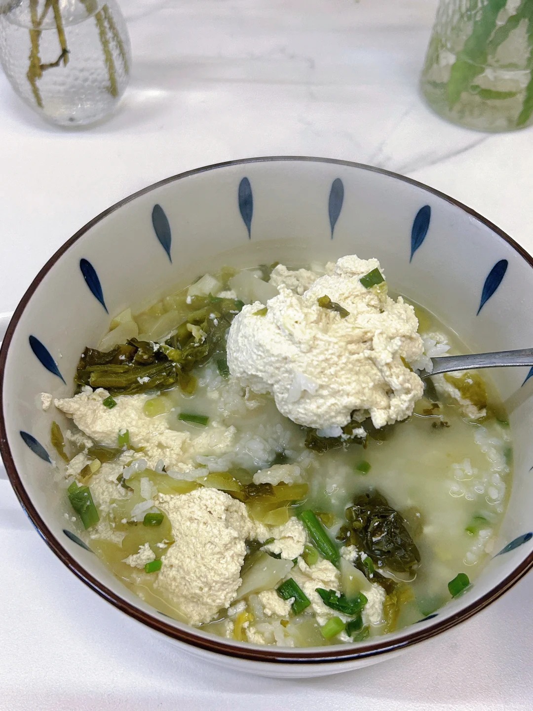 2. Cháo gạo tào phớ dưa muối: Chén súp sưởi ấm tâm hồn (mang bóng dáng của tào phớ nước đường)