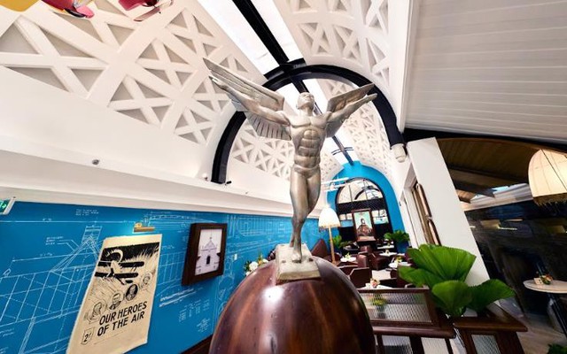 Các mảng tường phủ kín những phác thảo kỹ thuật máy bay, động cơ bằng nét phấn. Những bức họa nghệ thuật được Bill Bensley đích thân tuyển chọn, khắc họa hình ảnh những phi công thời kỳ đầu trong trang phục mũ da, kính bảo hộ và áo khoác măng tô.
