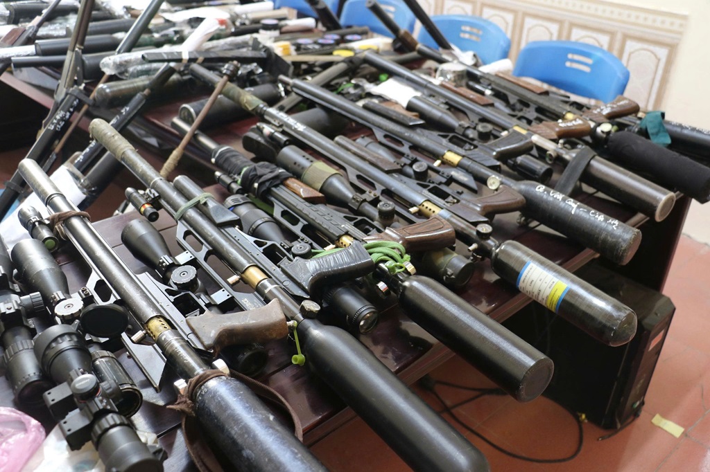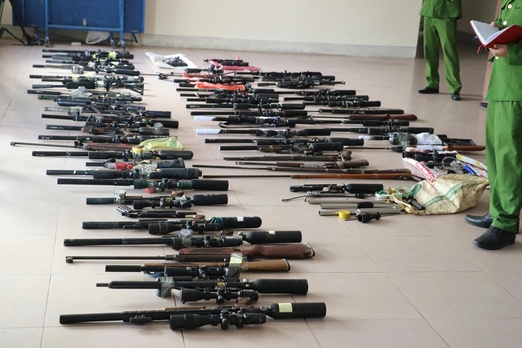 Tang vật thu giữ: 64 khẩu súng quân dụng, 28.720 viên đạn thuộc danh mục vũ khí quân dụng, 24 khẩu súng là công cụ hỗ trợ, 1.260 viên đạn bi và đạn cao su; 2 laptop, 42 điện thoại di động và các đồ vật khác có liên quan.