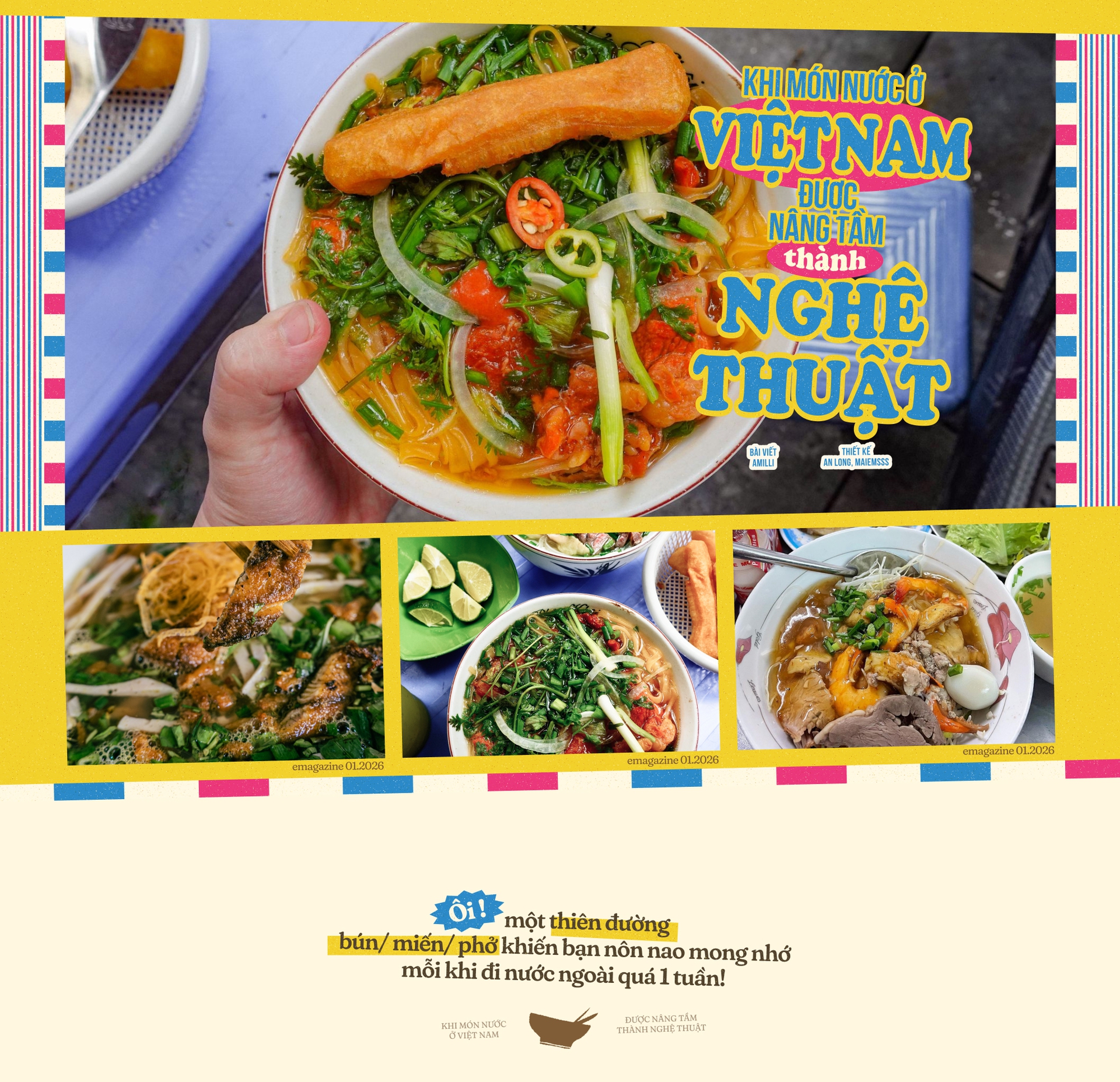 Nghệ thuật ấy không bao giờ bị đóng khung trong những công thức khô khan. Nó tồn tại và biến biến hóa theo từng giác quan của chúng ta: là cái chạm của đôi đũa tre, là làn khói nghi ngút đánh thức khứu giác, là âm thanh "húp" sùm sụp tràn đầy niềm vui, và là hơi ấm lan tỏa trong lồng ngực. Thứ nghệ thuật này chỉ thực sự trọn vẹn khi được ăn đúng cách: ăn khi còn nóng, ăn trong bầu không khí náo nhiệt của quán nhỏ ven đường hay sự ấm cúng của bếp nhà, và ăn bằng tất cả sự trân trọng dành cho những người đã tạo ra nó.