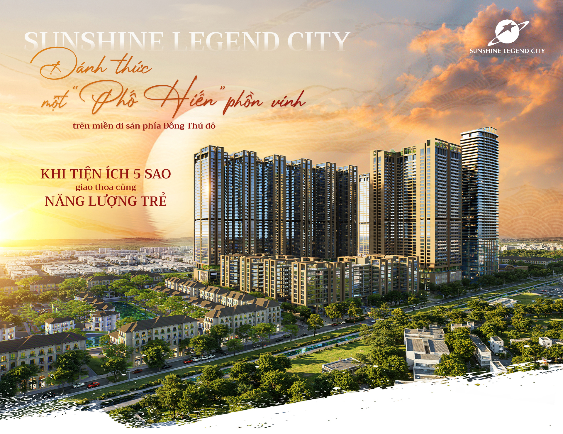 Hãy tưởng tượng về một dòng sông di sản trải dài 2km, nơi công nghệ 3D Mapping và Hologram đánh thức màn đêm bằng những đại tiệc ánh sáng và thực cảnh mãn nhãn. Tại đây, những tuyến phố đi bộ ven sông sôi động đan xen cùng "đại lộ mua sắm trên không" xa hoa và nhịp sống ZenZ Hub thời thượng. Tất cả cộng hưởng cùng tổ hợp nghỉ dưỡng mặt đất, hệ thống Clubhouse, Lounge Bar thượng lưu và hệ cảnh quan mặt nước rộng hơn 31.000 m²… Đó là những nét phác hoạ đầu tiên về Sunshine Legend City – Thành phố trẻ trên miền di sản phía Đông Hà Nội của Sunshine Group.