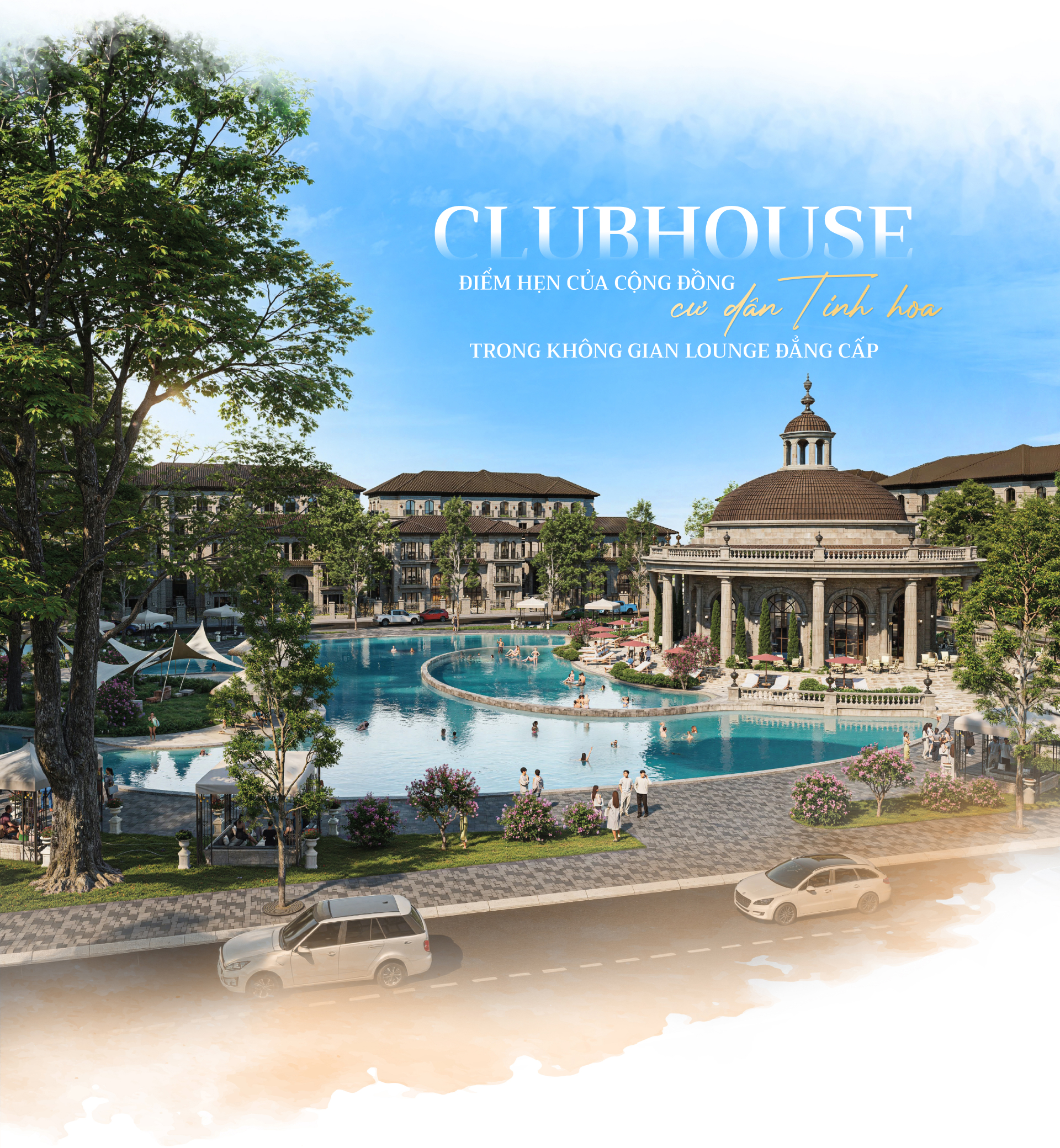 Dọc theo hồ cảnh quan, hệ thống sàn tắm nắng và dãy ghế thư giãn được bố trí khéo léo như một "mini beach" riêng tư, nơi mọi hối hả nhường chỗ cho sự an yên tuyệt đối. Khi hoàng hôn buông xuống, toàn bộ không gian bừng sáng bởi những màn trình diễn nhạc nước và ánh sáng đặc sắc, biến nơi đây thành điểm hẹn giải trí về đêm đầy lôi cuốn. Tất cả hợp thành một quần thể nghỉ dưỡng hoàn chỉnh, nâng tầm khái niệm an cư thành một hành trình trải nghiệm bất tận mỗi ngày.