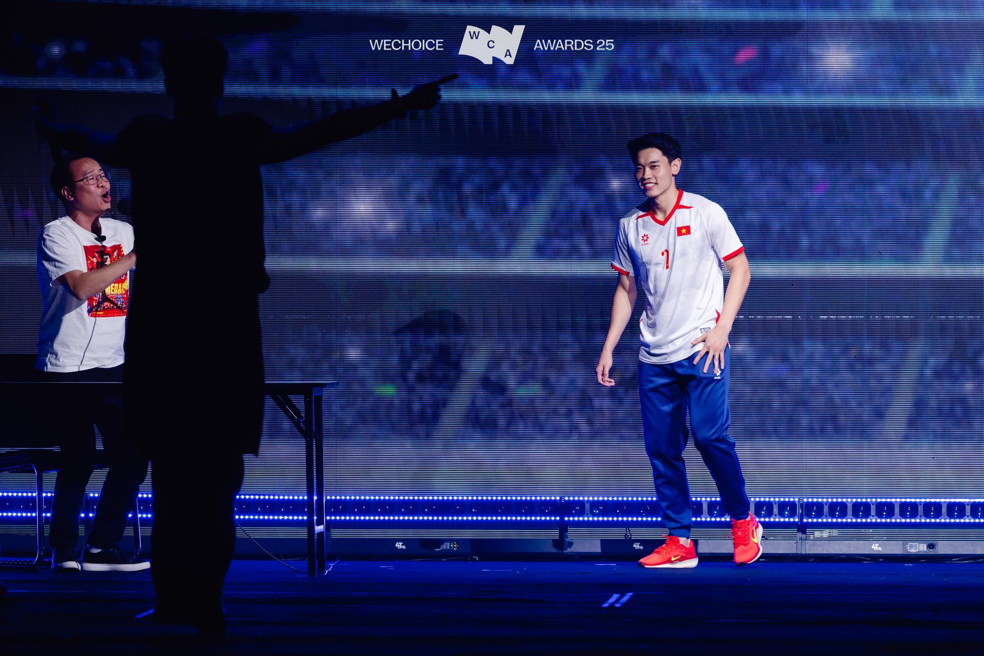 Đáng chú ý hơn cả, sân khấu Thắng Đời 1-0 còn ghi điểm mạnh nhờ sự xuất hiện đặc biệt của cầu thủ Nguyễn Đình Bắc cùng BLV Tạ Biên Cương. Tại WeChoice, Đình Bắc tái hiện lại khoảnh khắc quen thuộc trên sân cỏ, ngay lập tức khuấy động bầu không khí và nhận về những tràng cổ vũ phấn khích từ khán giả. Tuy nhiên, bên cạnh yếu tố bùng nổ, loạt biểu cảm ngại ngùng, bối rối đầy chân thật của nam cầu thủ khi đứng trên sân khấu giải trí lại trở thành “điểm rơi” khiến cộng đồng mạng thích thú.