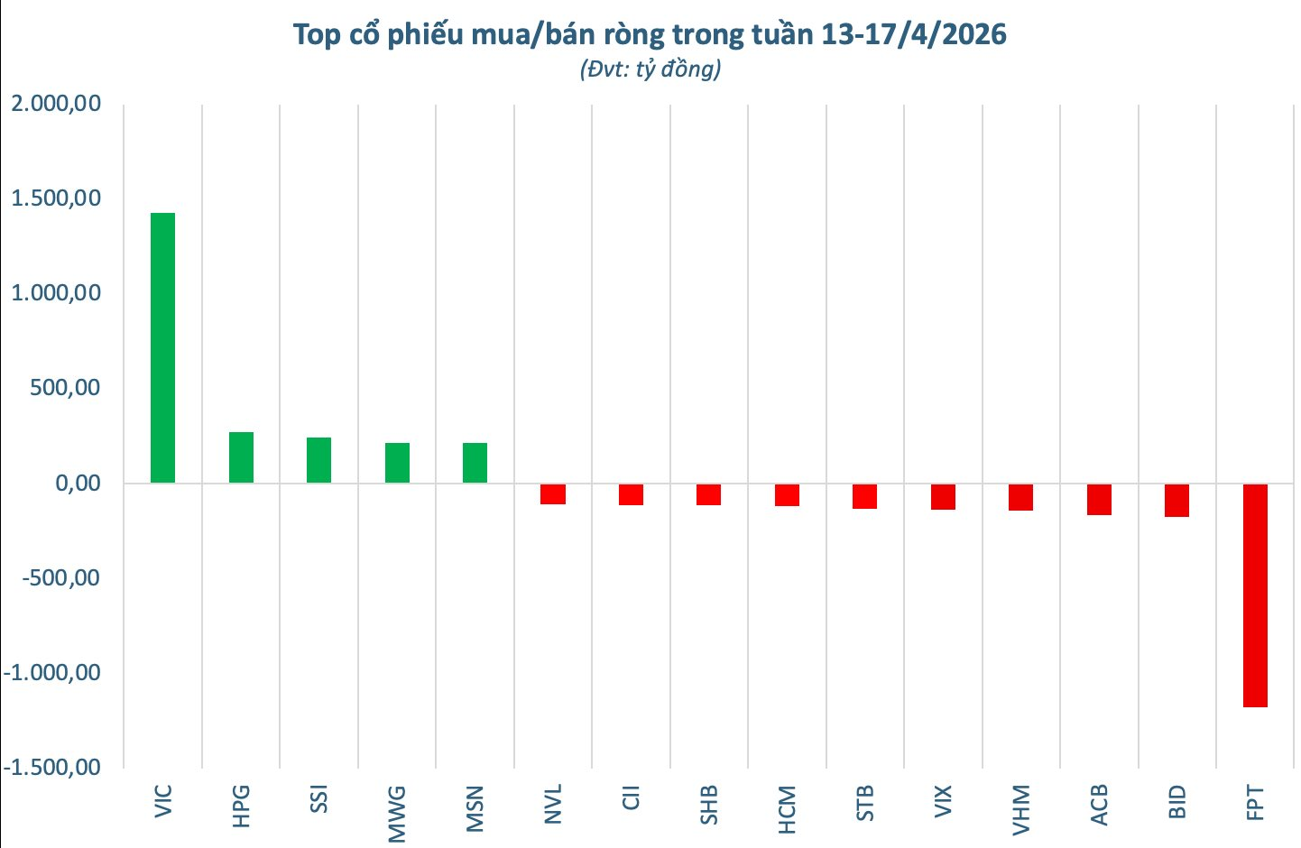 Khối ngoại bán ròng đột biến gần 5.000 tỷ đồng tuần 13-17/4, cổ phiếu nào bị "xả" mạnh nhất?
