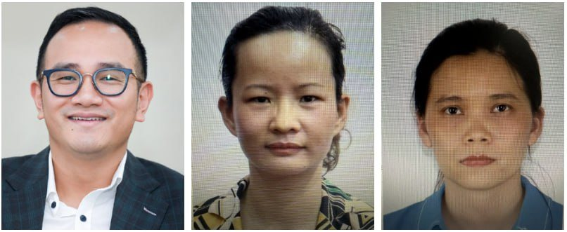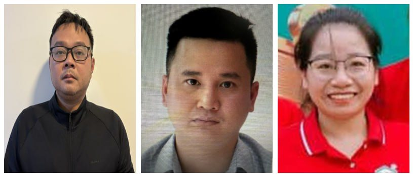Các bị can (từ trái qua phải): Đào Hữu Duy Anh; Đào Thị Mai; Hoàng Thúy Hà.