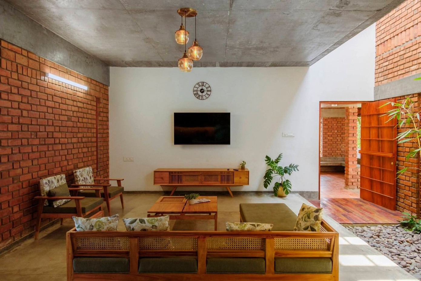 Không gian chữa lành cho gia đình trẻ với gạch mộc và ánh sáng tự nhiên