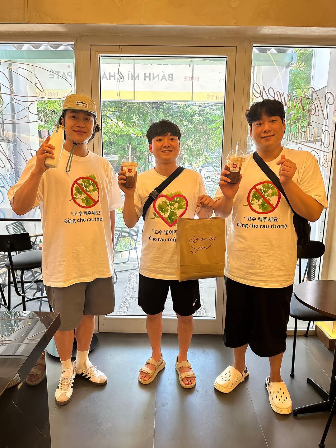 Trước đó, năm 2025, hình ảnh du khách Hàn Quốc in sẵn áo phông có dòng chữ “Đừng cho rau thơm”, “Cho rau mùi vào đi” khi đến Việt Nam cũng khiến nhiều cư dân mạng thích thú.