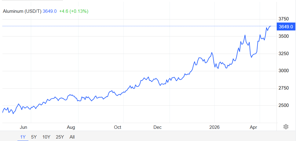 Ở chiều ngược lại, nhu cầu tiêu thụ nhôm toàn cầu được dự báo tăng chậm lại. JPMorgan đã hạ dự báo tăng trưởng nhu cầu năm 2026 xuống khoảng 1,4%. Tuy nhiên, điều này chưa đủ để giảm áp lực lên giá, khi nguồn cung vẫn là yếu tố chi phối chính.