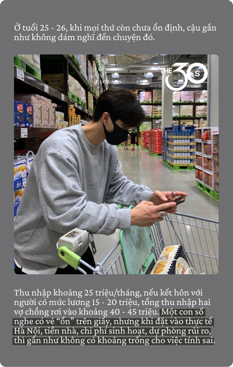 Ở tuổi 25 - 26, khi mọi thứ còn chưa ổn định, cậu gần như không dám nghĩ đến chuyện đó. Thu nhập khoảng 25 triệu/tháng, nếu kết hôn với người có mức lương 15 - 20 triệu, tổng thu nhập hai vợ chồng rơi vào khoảng 40 - 45 triệu. Một con số nghe có vẻ “ổn” trên giấy, nhưng khi đặt vào thực tế Hà Nội, tiền nhà, chi phí sinh hoạt, dự phòng rủi ro, thì gần như không có khoảng trống cho việc tính sai.
