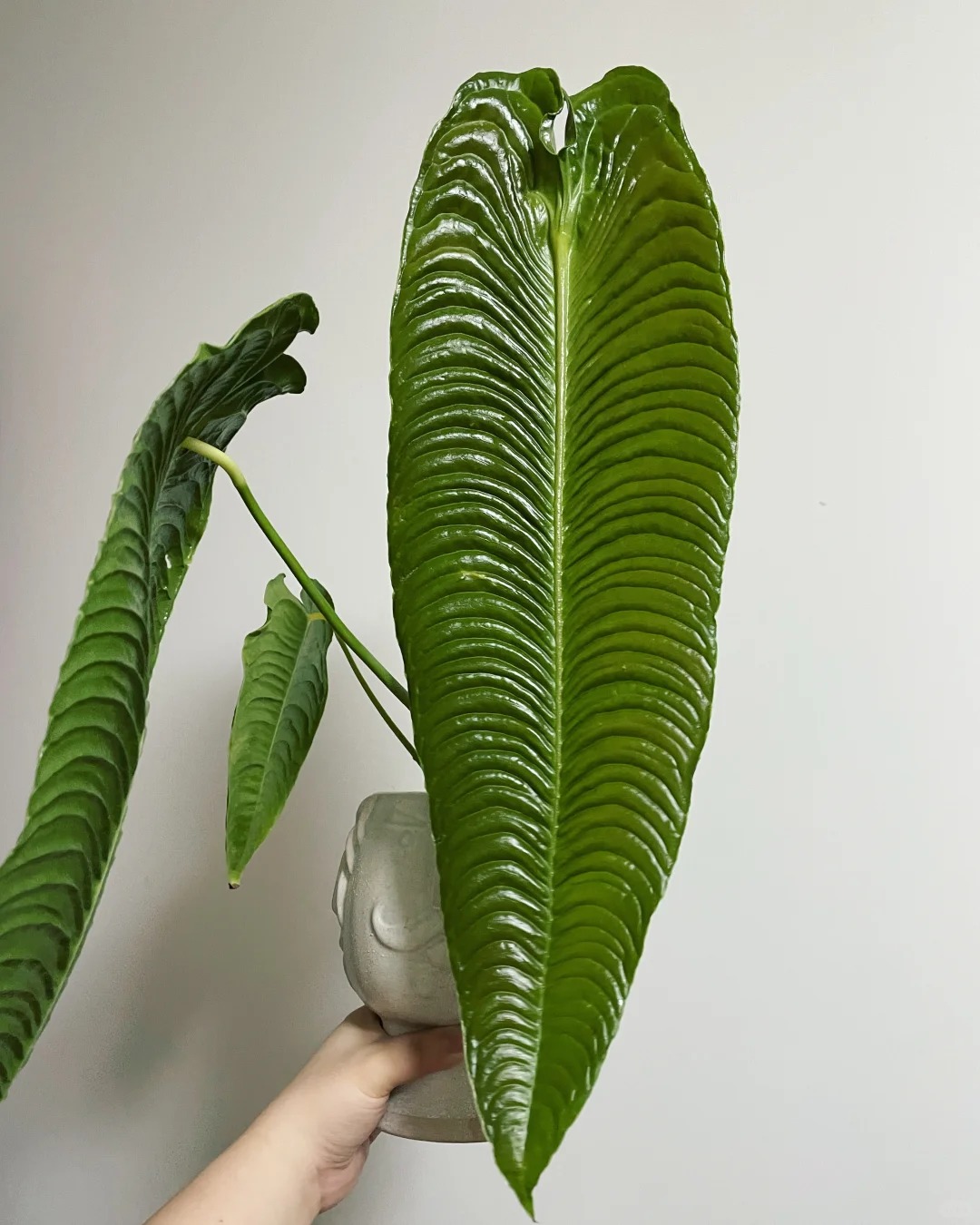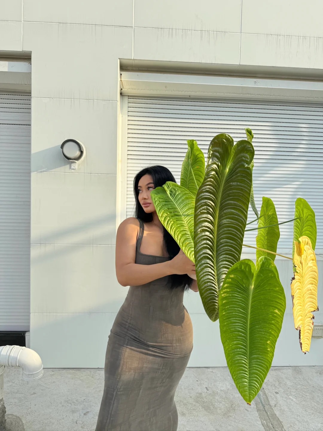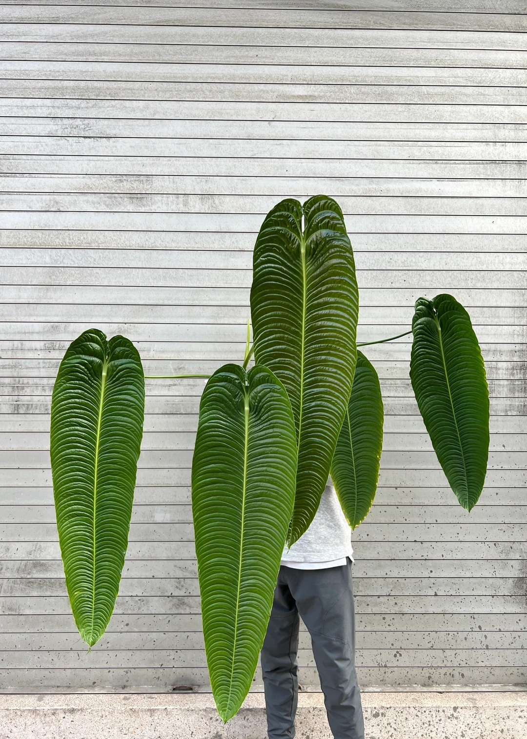 Mọi chuyện bắt đầu vào một ngày nọ, khi tôi lỡ va phải ánh mắt với một gốc hồng môn vua nguyên bản được nhập khẩu về. Cái cách mà những phiến lá thuôn dài, bóng bẩy thả mình rủ xuống, kết hợp cùng kết cấu vân lá nhăn nheo, nổi cộm lên một cách đầy nếp lang đã khiến tôi mê mẩn ngay lập tức.