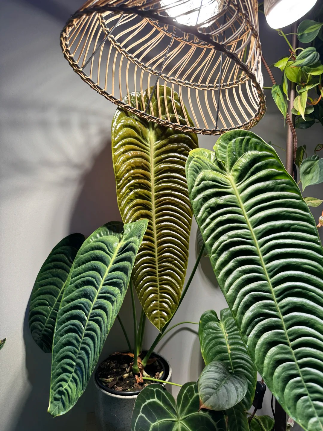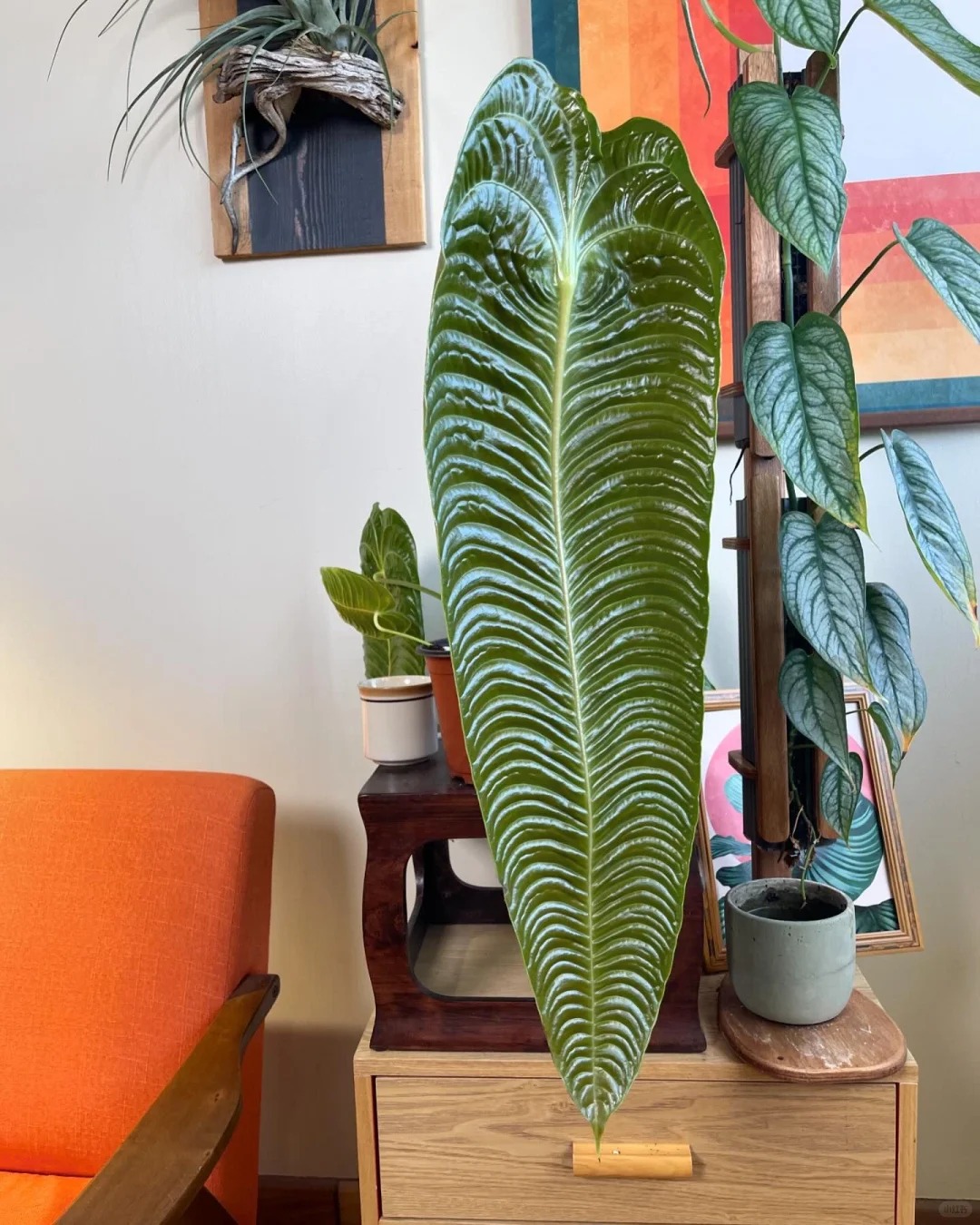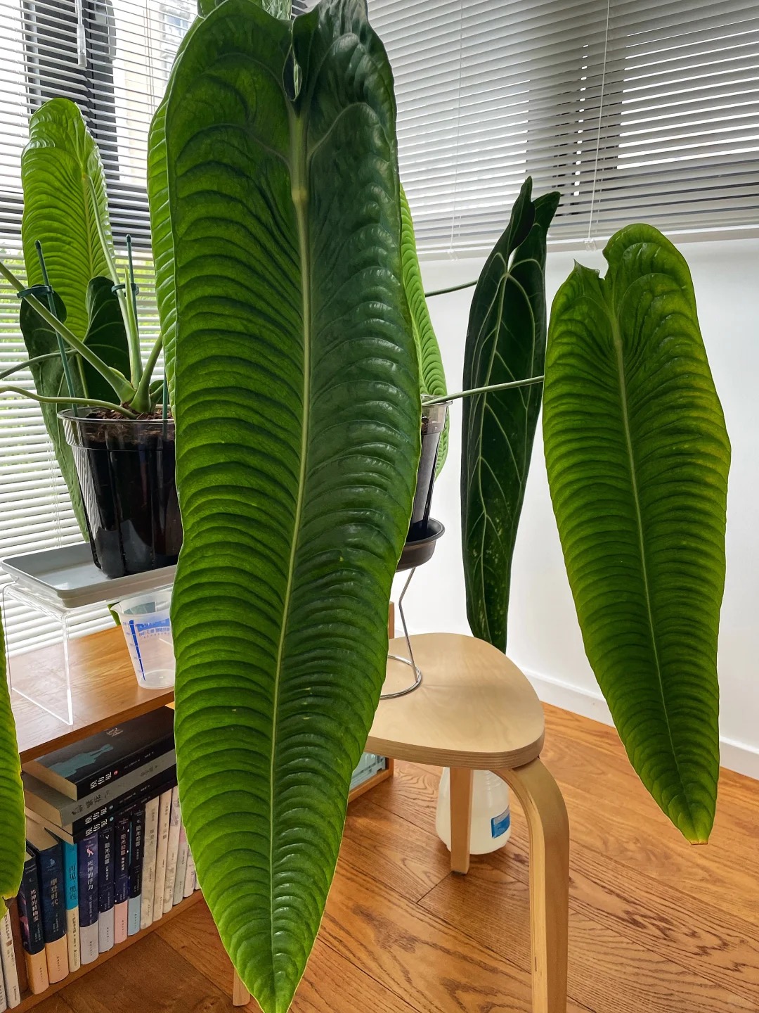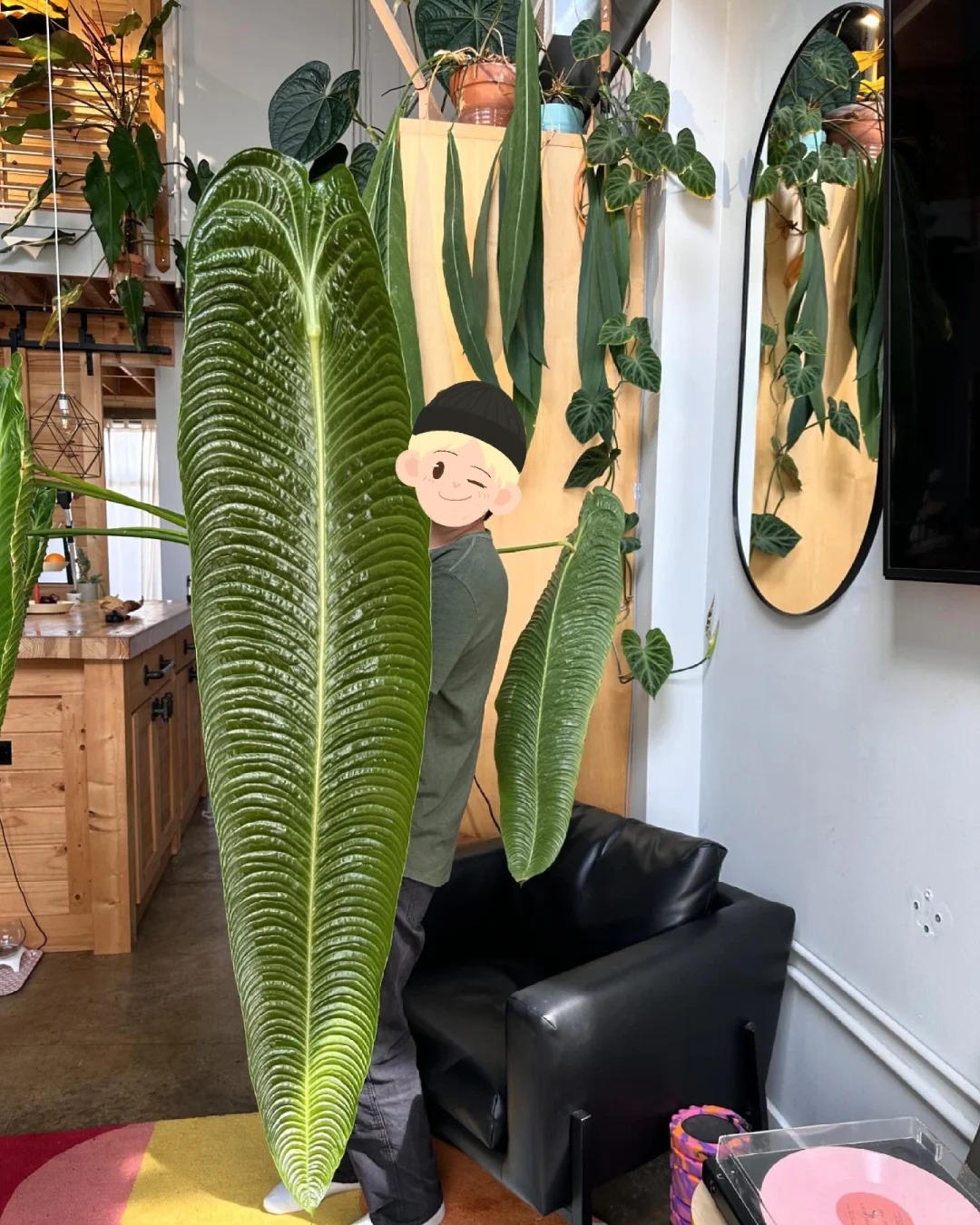 Mọi chuyện bắt đầu vào một ngày nọ, khi tôi lỡ va phải ánh mắt với một gốc hồng môn vua nguyên bản được nhập khẩu về. Cái cách mà những phiến lá thuôn dài, bóng bẩy thả mình rủ xuống, kết hợp cùng kết cấu vân lá nhăn nheo, nổi cộm lên một cách đầy nếp lang đã khiến tôi mê mẩn ngay lập tức.