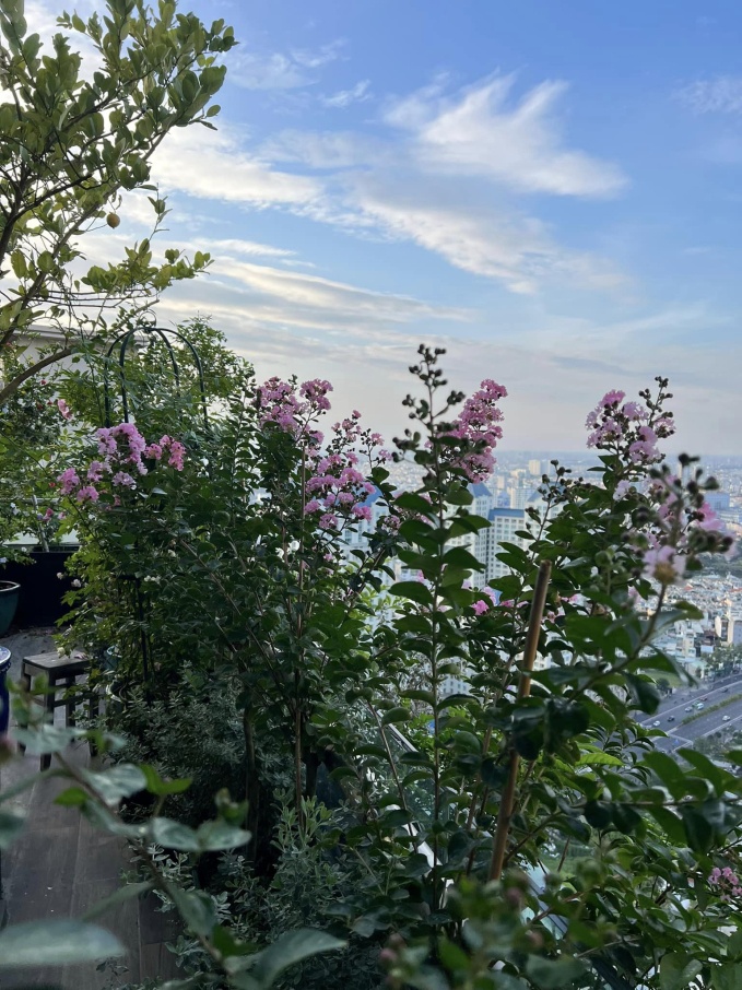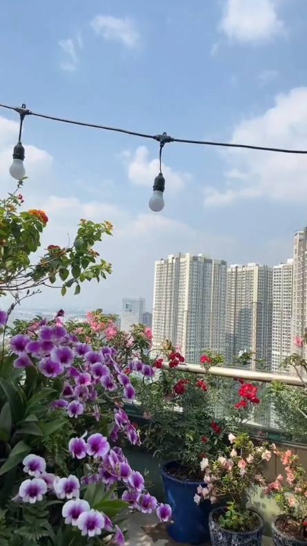 Khu vườn trên căn penthouse ôm trọn view Lanmark 81 của phú bà Hannah Olala khiến nhiều người ngưỡng mộ.
