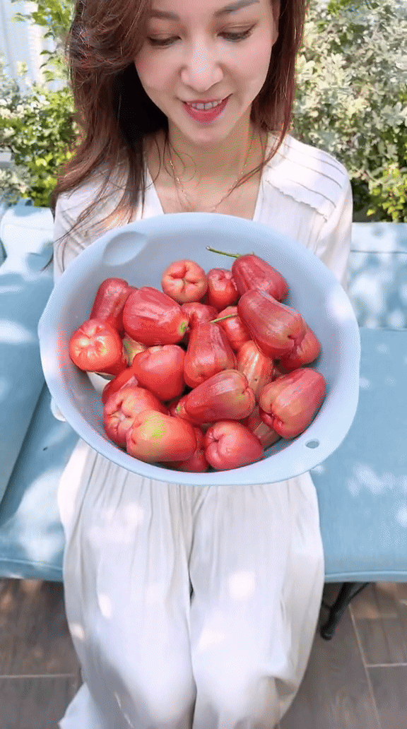 Khu vườn của Hannah không chỉ để ngắm, cây cối ở đây tươi tốt và phát triển gần như quanh năm. Phú bà có hẳn một tầng dành riêng cho cây ăn trái: xoài, mận, cóc, bưởi, ổi… Những loại cây tưởng chỉ hợp với sân vườn dưới đất lại xuất hiện trên cao, xanh tốt và sai quả đến mức gia chủ nhiều lần phải mang chia cho bạn bè, đồng nghiệp.