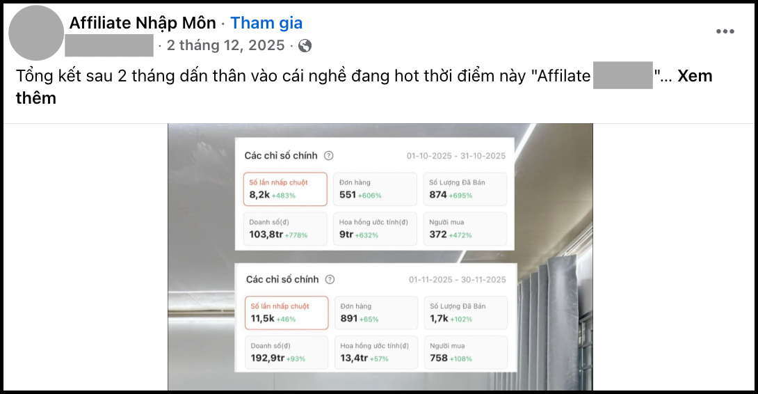 Mỗi câu chuyện mang những con số khác nhau, nhưng điểm chung đều xoay quanh doanh thu lớn, hoa hồng cao và lời khẳng định: affiliate là cách kiếm tiền dễ tiếp cận, không cần vốn, không ôm hàng, ít rủi ro.