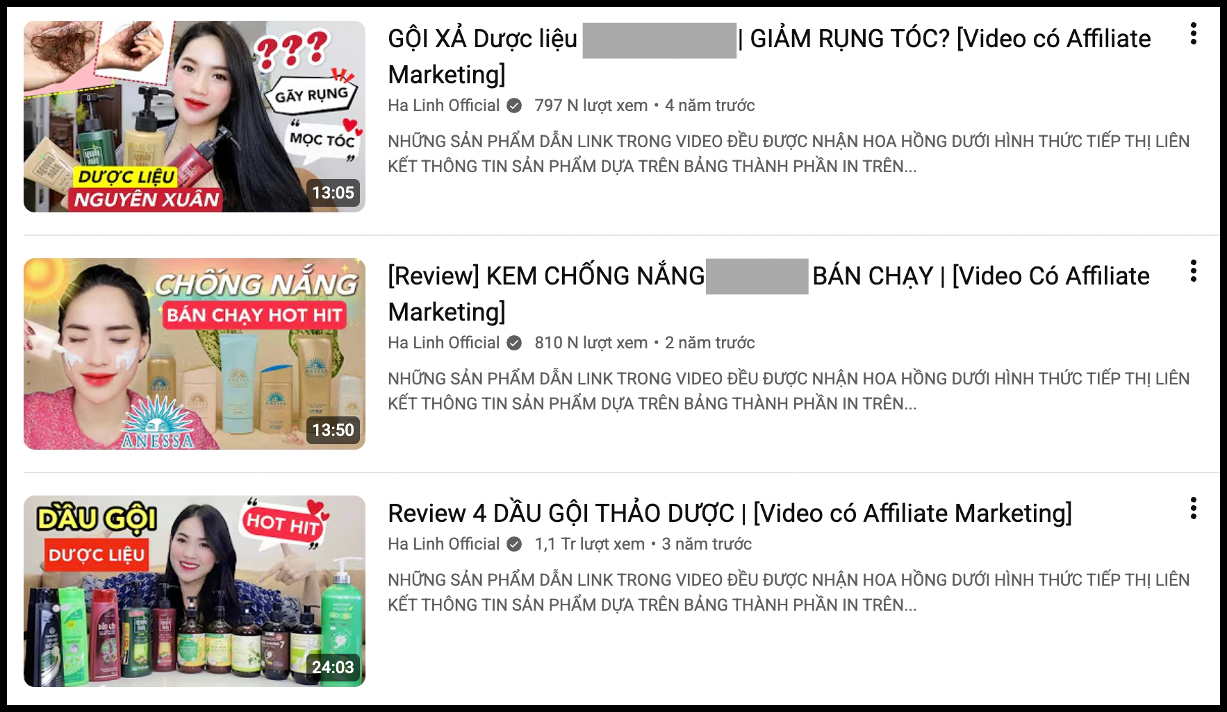 Cụ thể hơn, nhiều KOL/KOC hoặc nhà sáng tạo nội dung, hot girl MXH vẫn xem hình thức gắn link tiếp thị liên kết là một nguồn thu nhập. Ví dụ điển hình là Võ Hà Linh. Dù không nhận booking nhưng trong các video review của mình, Hà Linh thường chú thích “Video có affiliate marketing”. Các hot girl hay gắn link trên story Instagram như Xoài Non (Phạm Thùy Trang), Babyboo (Tăng Mỹ Hàn), Wyn.anh (Đỗ Quỳnh Anh),... cũng là tiếp thị liên kết.