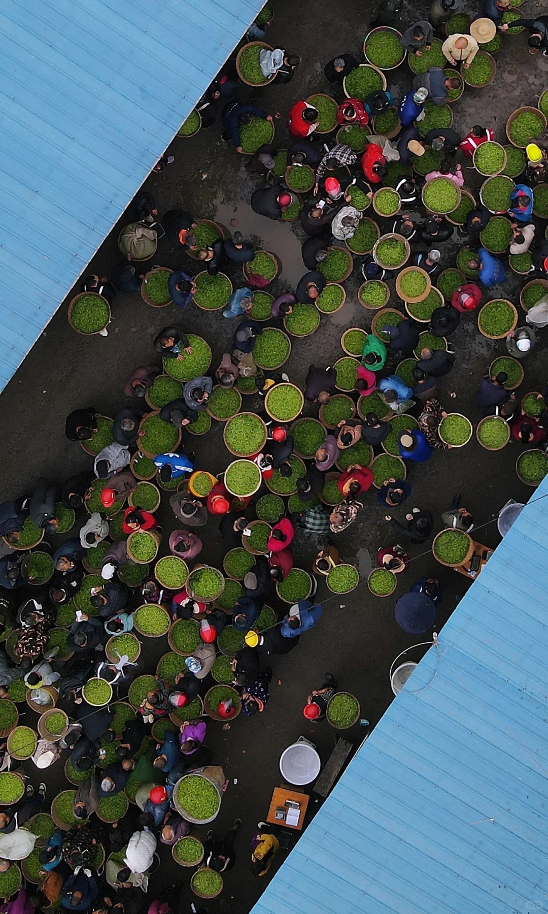 Họ tụ họp lại nơi đây không đơn thuần chỉ để buôn bán xô bồ, mà ở một góc độ nên thơ hơn, họ đang đến để "trao đổi mùa xuân" với những thương lái cất công lặn lội từ muôn phương tới. Tiếng trả giá ồn ào, tiếng cười nói rôm rả xua tan đi sự tĩnh lặng của buổi trưa hè nhạt nắng. Những búp trà tươi non vừa rời cành được đưa ra ánh sáng nâng niu, kiểm tra kỹ lưỡng sắc độ xanh, độ nảy của búp, rồi được định giá bằng chính sự trân trọng của người mua và niềm tự hào lấp lánh trong ánh mắt người bán.