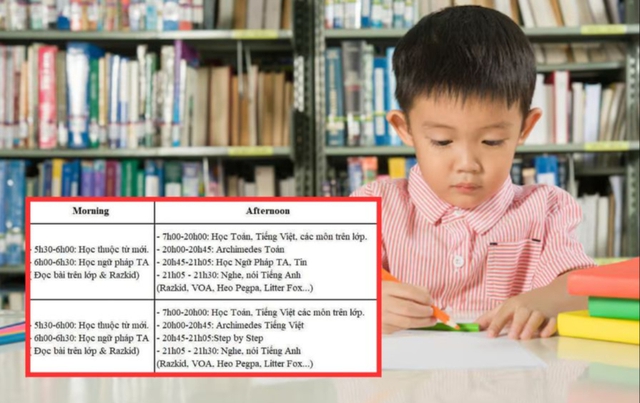Một thời khoá biểu dày đặc từ 5h30 sáng đến 21h30 tối, không có một khoảng trống nào cho việc ăn uống, vui chơi hay thậm chí là… đi vệ sinh, vừa được lan truyền chóng mặt trong một hội nhóm phụ huynh.
