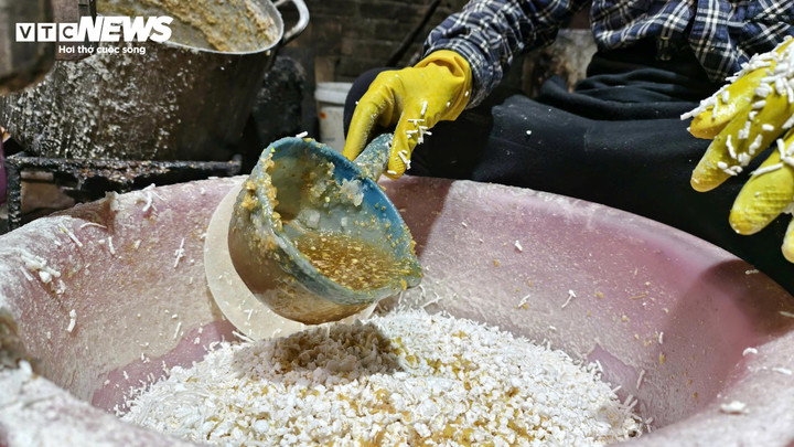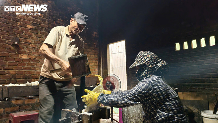 Do nhu cầu tăng cao vào dịp Tết, nhiều hộ làm bánh phải tăng công suất gấp ba đến bốn lần so với ngày thường. Điều này đòi hỏi không chỉ sức lực mà còn sự tỉ mỉ, kiên nhẫn trong mỗi công đoạn, từ chọn nếp, rang nếp, trộn đường và gừng, đến đóng khuôn, nện bánh, sấy, đóng gói.