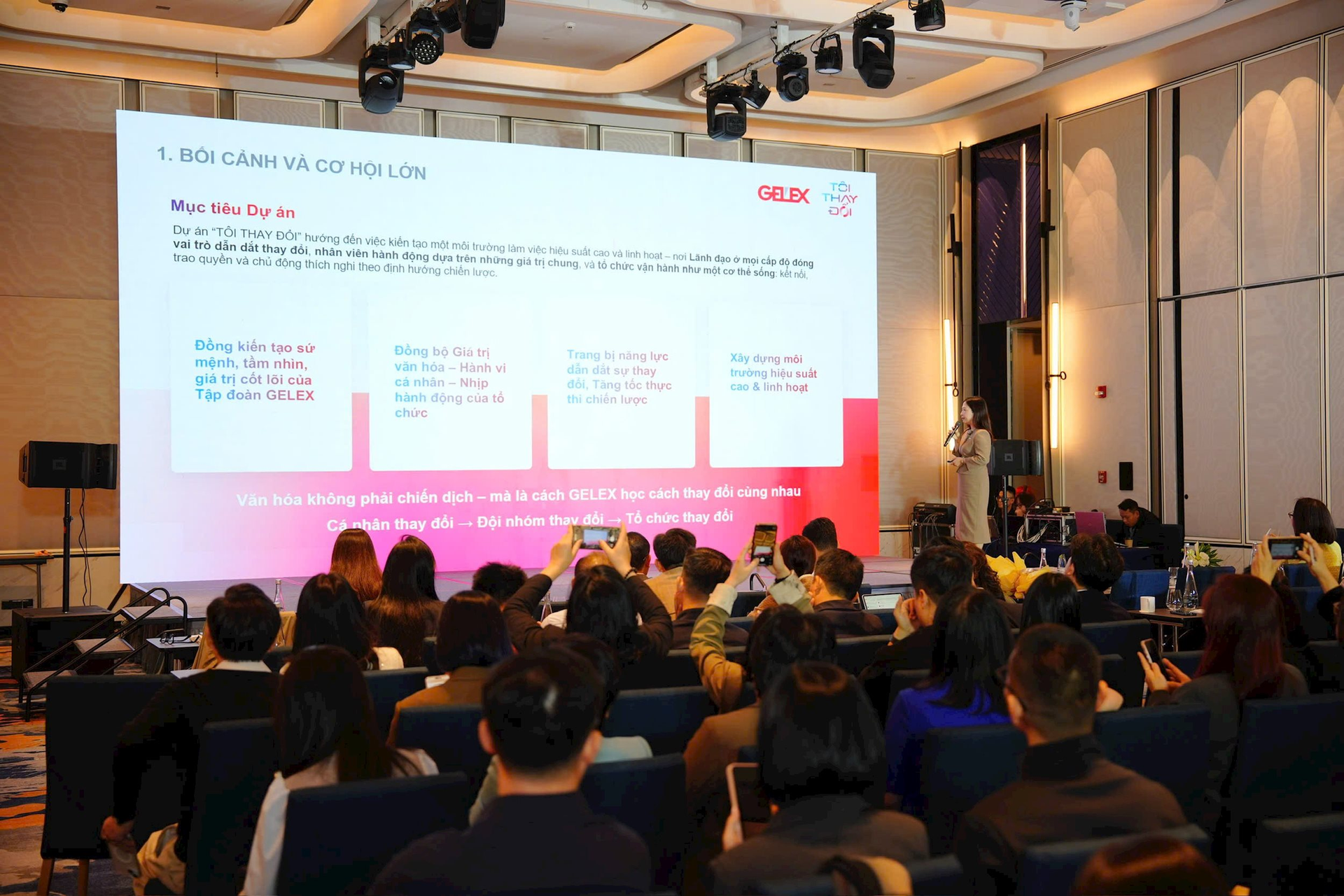 Đó là lý do dự án tái tạo văn hóa mang tên "Tôi thay đổi" ra đời. GELEX xác định: sự thay đổi phải xuất phát từ mỗi cá nhân. Khi mỗi cá nhân thay đổi thì đội nhóm thay đổi, và từ đó tổ chức mới có thể chuyển hóa.