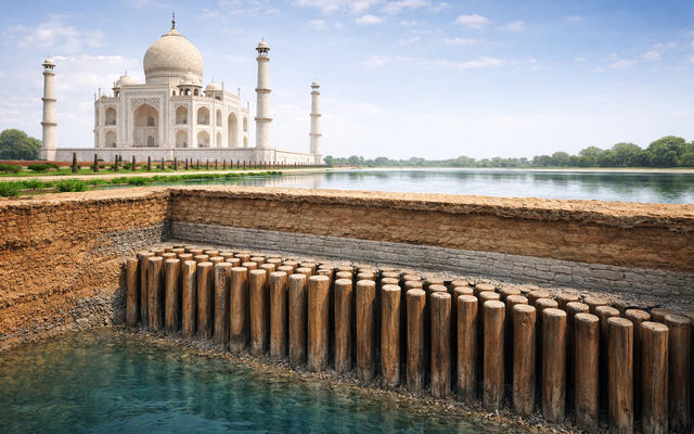 Gần bốn thế kỷ trôi qua kể từ ngày Taj Mahal hoàn thành, công trình này vẫn đứng lặng bên bờ sông Yamuna như một nghịch lý chưa có lời giải trọn vẹn: Hàng trăm nghìn tấn nổi hoàn hảo ở vùng ven sông với phù sa mềm và bất đổn định.