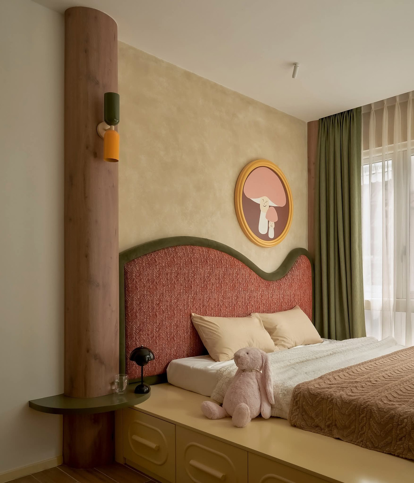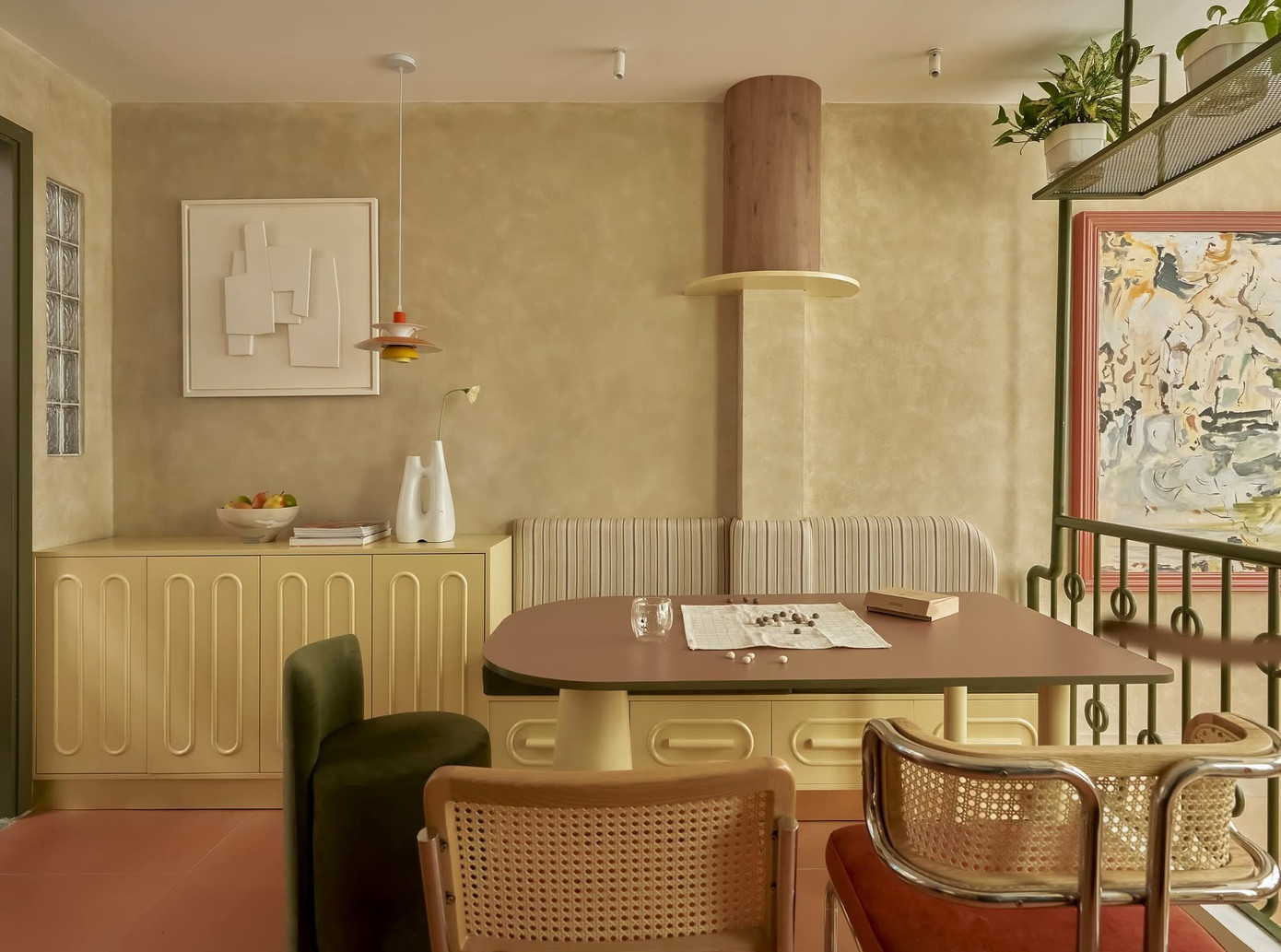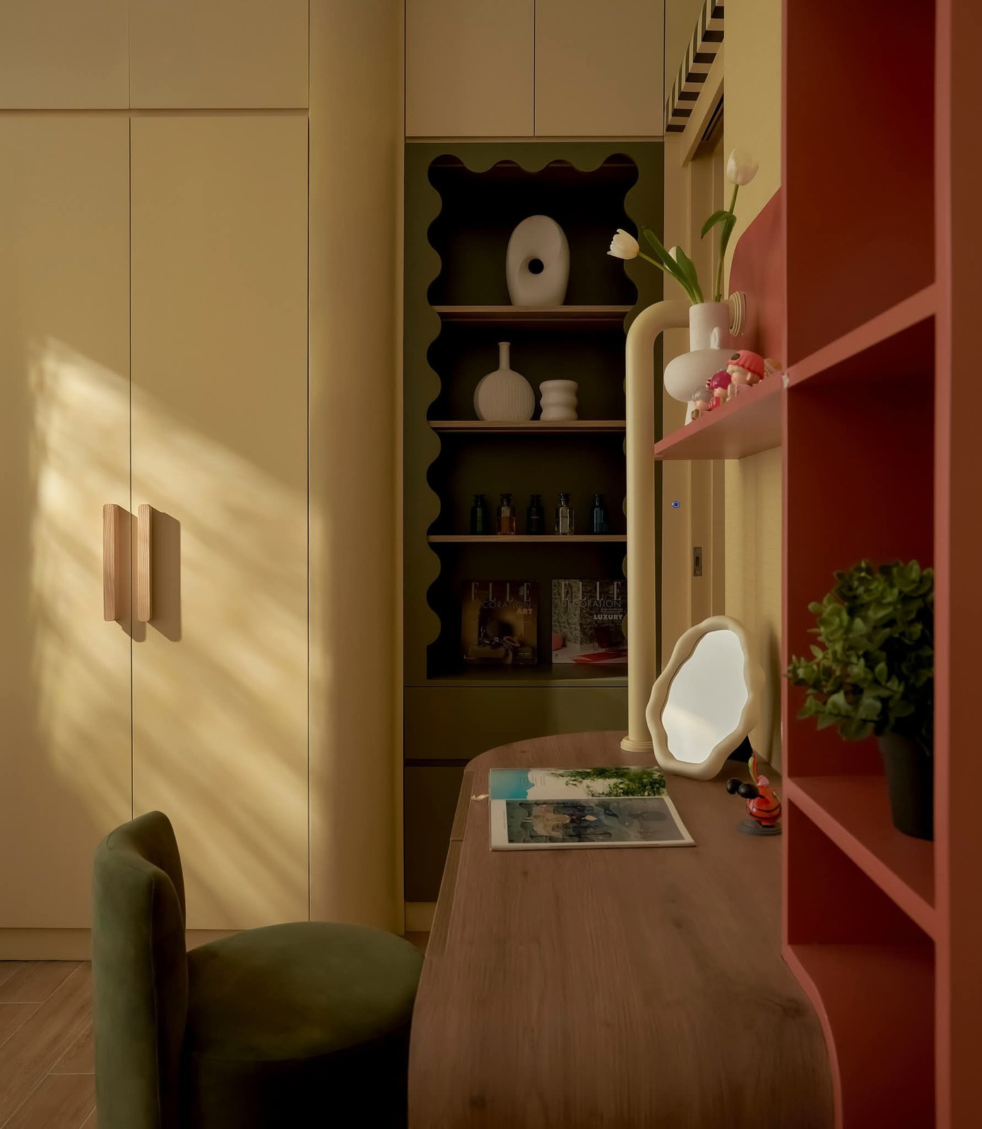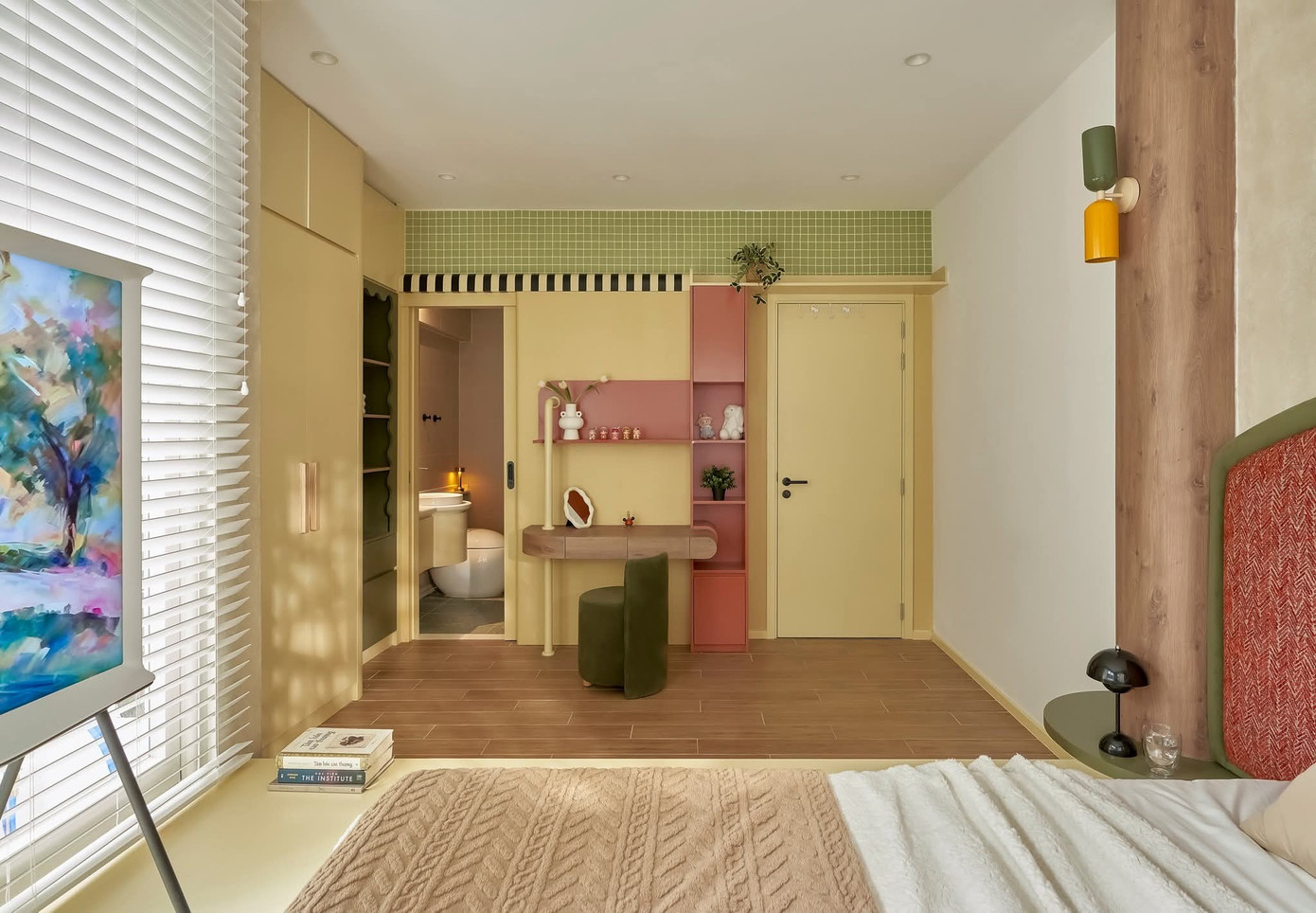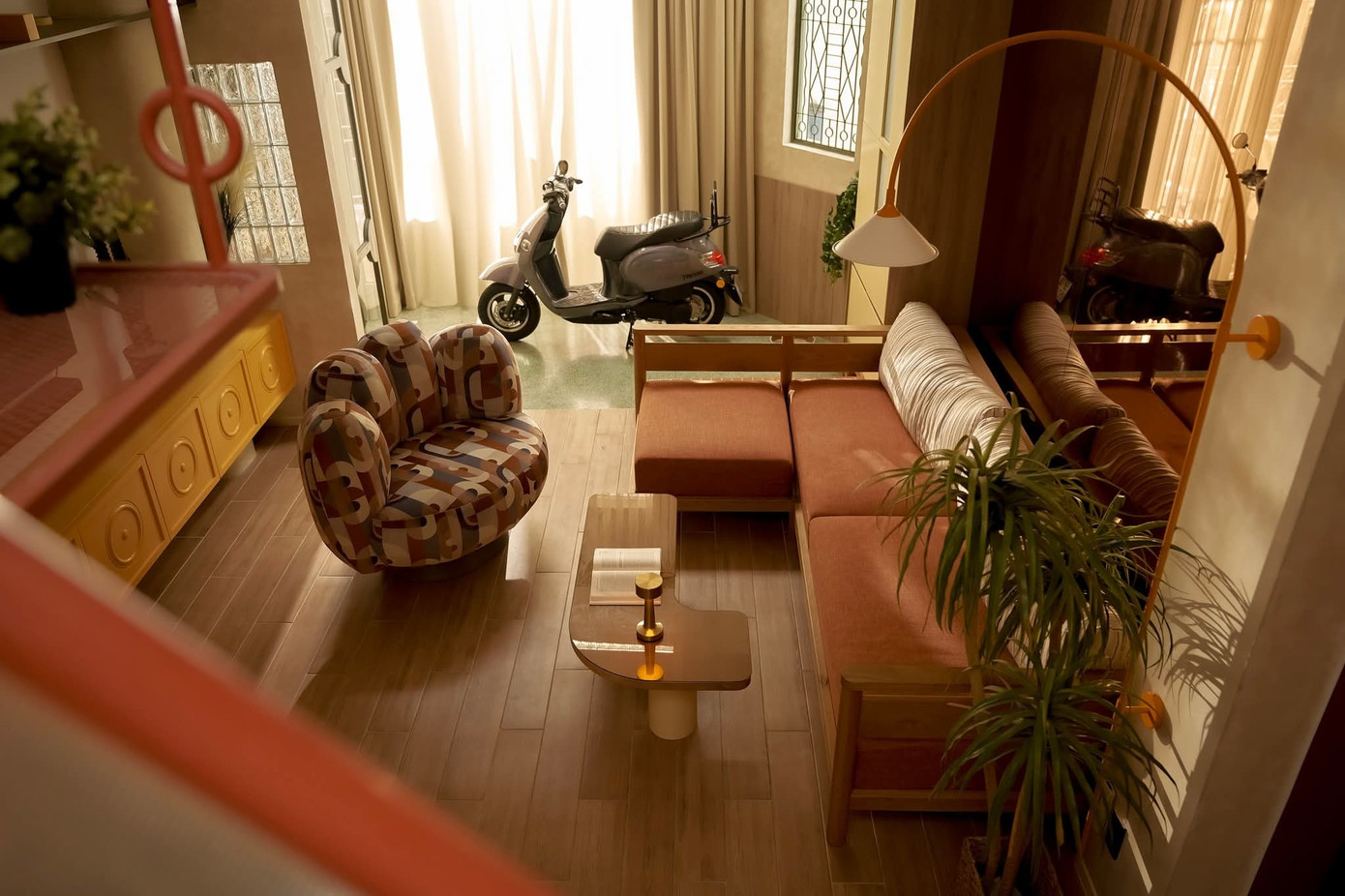 Bên trong, từng mảng màu sắc được chọn lựa tinh tế, nhẹ nhàng đan xen, như một bản hòa ca giữa sự trẻ trung hiện đại và những ký ức quen thuộc, để bà và cháu gái cảm nhận được sự gắn bó và ấm áp trong từng góc nhà.
