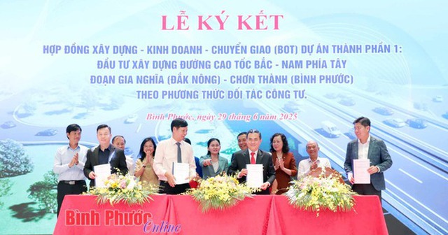Sáng 29/6, UBND tỉnh Bình Phước đã ký kết hợp đồng BOT với liên danh Vingroup - Techtra để đầu tư xây dựng dự án thành phần 1 cao tốc Bắc - Nam phía Tây đoạn Gia Nghĩa - Chơn Thành theo phương thức PPP, với tổng mức đầu tư gần 20.000 tỷ đồng.