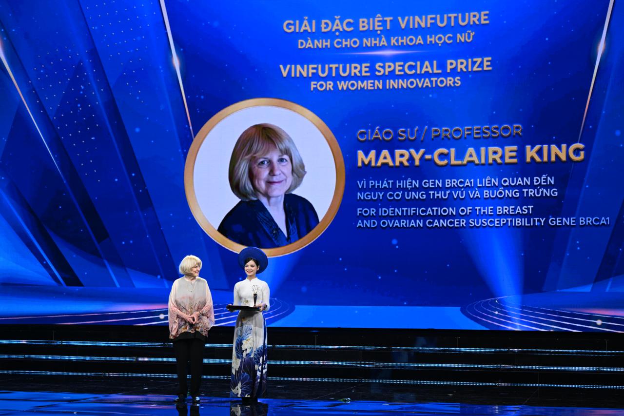 Tại lễ trao giải VinFuture 2025 diễn ra tối 05/12, giải Đặc biệt dành cho nhà khoa học nữ đã xướng tên Giáo sư Mary - Clare King đến từ Mỹ. Các nhà khoa học đạt giải Đặc biệt sẽ nhận được giải thưởng trị giá hơn 12 tỷ đồng (tương đương 500.000 USD). Giáo sư Mary - Clare King được vinh danh vì phát hiện gen BRCA1 liên quan đến nguy cơ ung thư vú và buồn trứng, đặt nền móng cho các xét nghiệm di truyền chương trình tầm soát và điều trị theo hướng cá thể hoá.