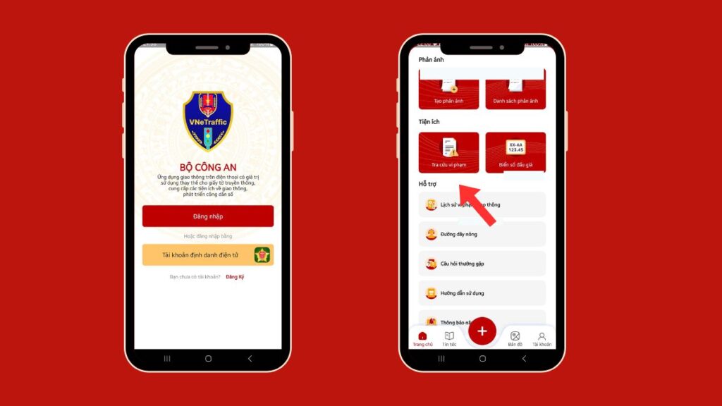 Sau khi đăng nhập, tại màn hình chính, chọn mục “ Tra cứu vi phạm ” và nhập biển số xe cần tra cứu.