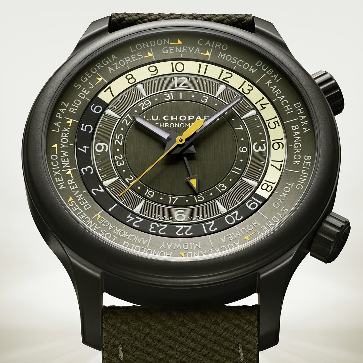 Ở nhóm đồng hồ chức năng phức tạp, Chopard bổ sung mẫu L.U.C Time Traveler One, cho phép theo dõi múi giờ của 24 thành phố cùng lúc. Mẫu này dùng chất liệu vỏ kết hợp gốm và titanium nhằm giảm trọng lượng, tăng độ bền và khả năng chống trầy xước.