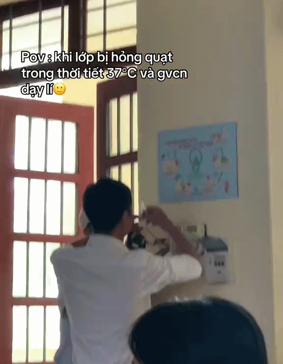 Lớp hỏng quạt giữa cái nắng 37 độ C, hành động của thầy giáo dạy Lý sau đó khiến trò phải cắt clip khoe ngay lên mạng