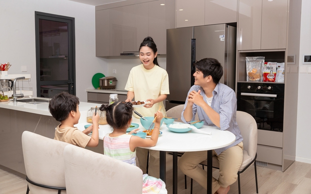 "Cả nhà chúng tôi cho hai em bé đi học cách nhà 5 phút, ba đi làm chỉ mất 15 phút còn mẹ ở nhà nội trợ, đưa đón bé và chuẩn bị những bữa ngon." - Anh H chia sẻ.