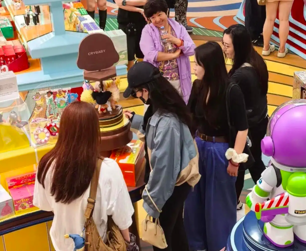 Lưu Diệc Phi sau đó tiếp tục say sưa ngắm nhìn những món đồ chơi và hộp mù. Điểm nhấn thú vị nhất ngày hôm đó có lẽ là khoảnh khắc một người phụ nữ mặc áo tím đứng cách đó không xa, ánh mắt dán chặt vào nữ diễn viên với nụ cười hiền hậu, không giấu nổi sự yêu mến.