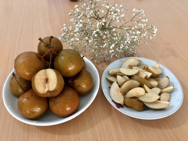 Quả mác cọt có kích thước không đồng đều, có quả bé xíu như quả bóng bàn, có quả lại to như quả lê Đông Khê danh tiếng. Khi còn xanh, mác cọt cứng và chát xít, nhưng khi chín ngả màu nâu, nó lại mang một vẻ hấp dẫn rất riêng. Với giá thành cực kỳ "hạt dẻ", chỉ dao động từ 10.000 đến 20.000 đồng/kg, đây là thứ quà vặt mà bất cứ ai cũng có thể mua cả túi to về để nhâm nhi cả ngày không chán. Nhiều người thường nhầm lẫn mác cọt với lê Tai Nung hay mắc cọp ở Sơn La, nhưng dân sành ăn chỉ cần nhìn qua là biết. Lê Tai Nung thường có núm lõm, thịt trắng, vị thanh mát dịu dàng, trong khi mác cọt lại mang trong mình sự pha trộn thú vị giữa vị chua, chát nhẹ và cái ngọt hậu rất sâu.