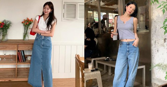 Chân váy denim rất dễ phối đồ. Một chiếc áo thun đơn giản hoặc áo hai dây ôm sát có thể tạo nên set đồ trẻ trung cho những ngày dạo phố. Nếu muốn phong cách nữ tính hơn, bạn có thể kết hợp chân váy denim midi với áo blouse mỏng và sandal quai mảnh. Chính sự đa dạng trong cách phối đã giúp chân váy denim trở thành item "phải có" trong tủ đồ mùa hè.
