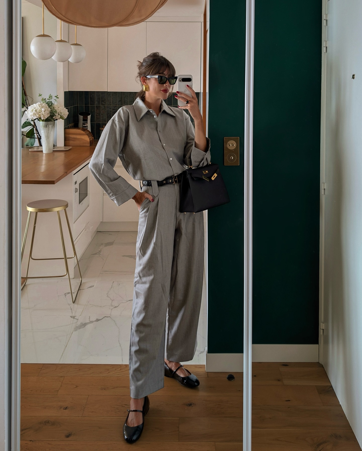Phụ kiện đi kèm thường rất tiết chế: một chiếc thắt lưng nhỏ, đôi khuyên tai đơn giản hoặc đồng hồ cổ điển. Nhờ đó, bộ trang phục giữ được sự thanh lịch mà không bị rối mắt.