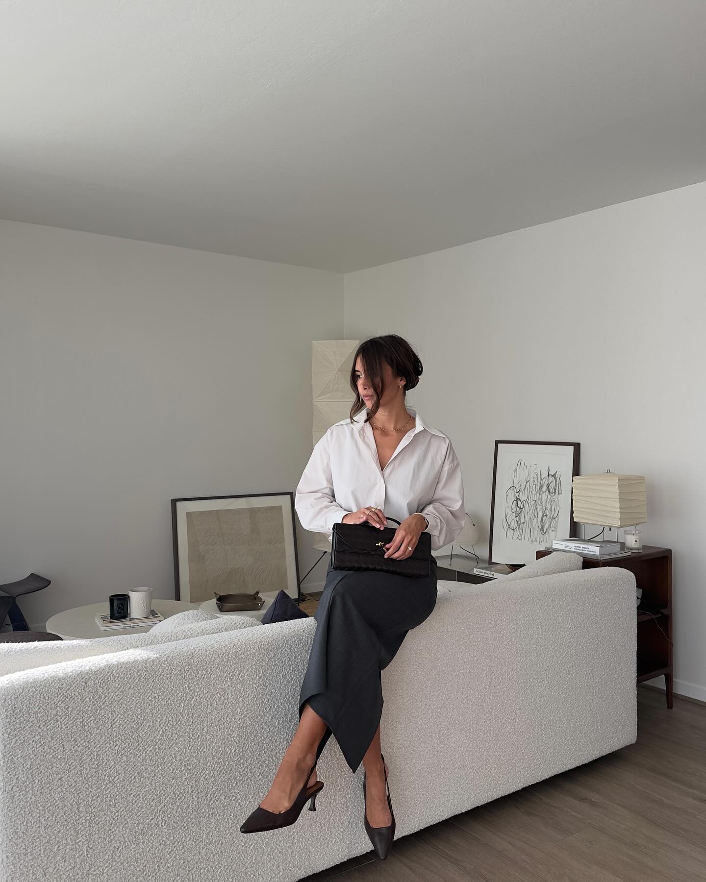 Chân váy dài và áo màu trung tính