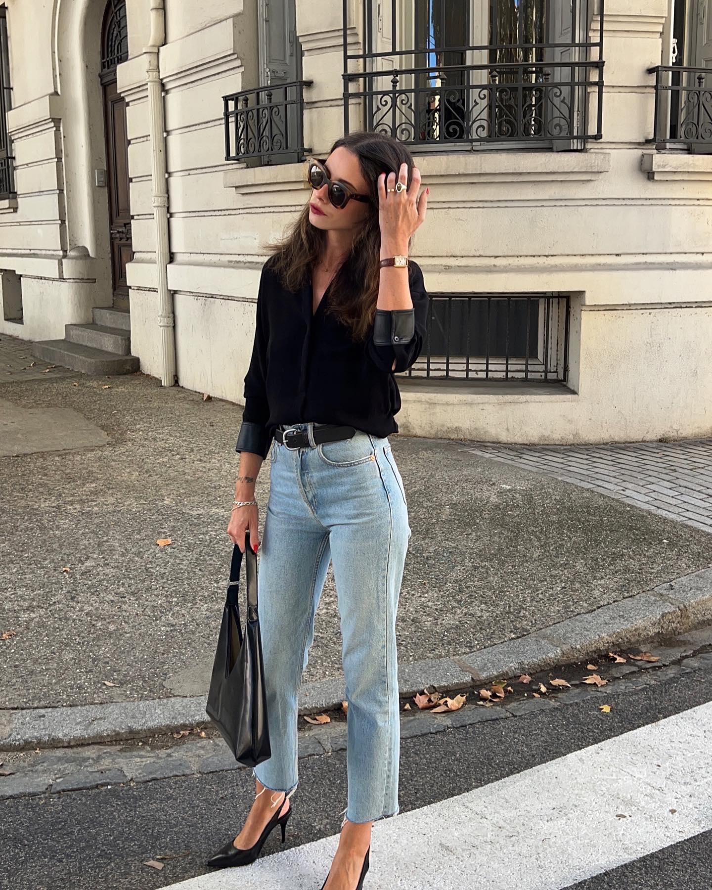 Nếu nghĩ jeans không phù hợp với công sở, thì phong cách Pháp sẽ khiến bạn thay đổi suy nghĩ. Quần jeans ống đứng, màu xanh đậm hoặc đen, hoàn toàn có thể trở thành lựa chọn lý tưởng nếu được phối đúng cách.