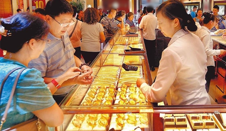 Bà Lý mua vàng mừng đầy tháng cháu. Ảnh minh họa.