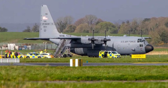 Một máy bay vận tải quân sự C-130 Hercules của Không quân Mỹ bị phá hoại khi đang đậu tại sân bay Shannon, hạt Clare - Ireland hôm 11-4 (giờ địa phương).