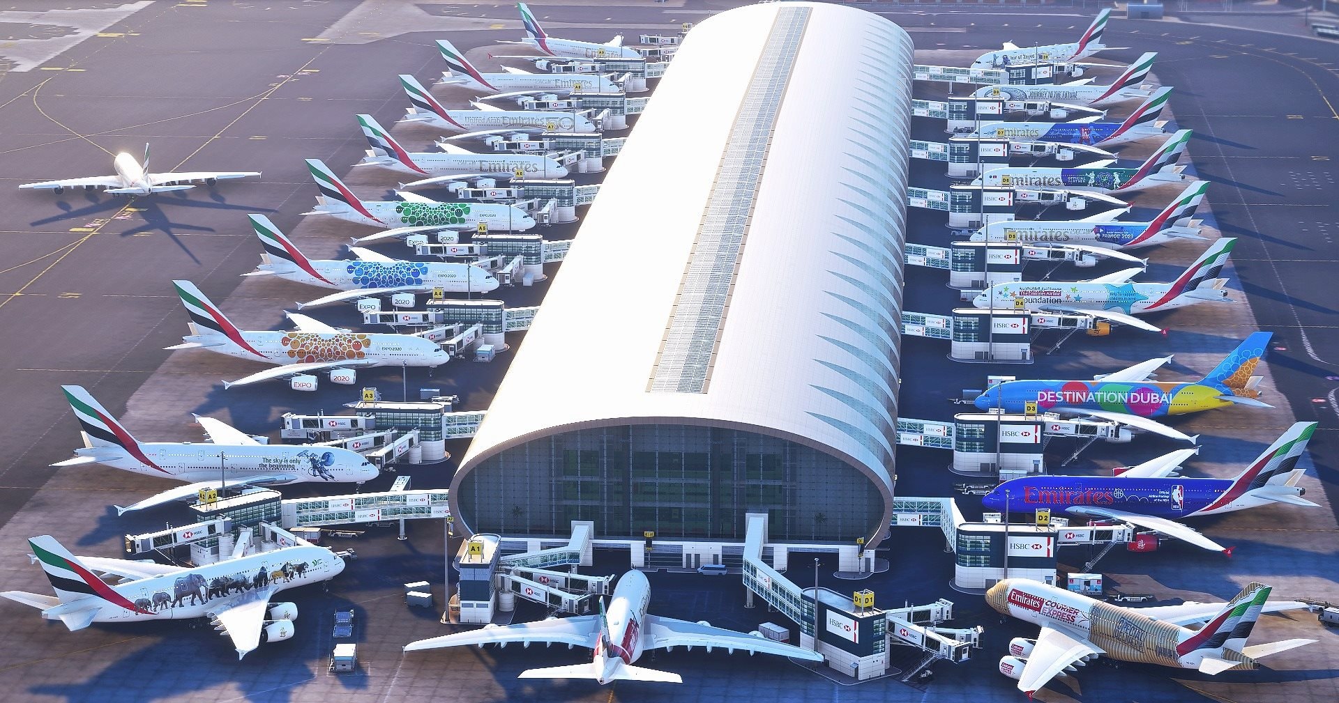 Theo trang theo dõi hành trình bay Flightradar24, chuyến bay đầu tiên là Emirates EK500, cất cánh lúc 21h12 giờ địa phương, hướng đến Mumbai (Ấn Độ). Chuyến bay được khai thác bằng máy bay Airbus A380 – dòng máy bay chở khách lớn nhất thế giới.