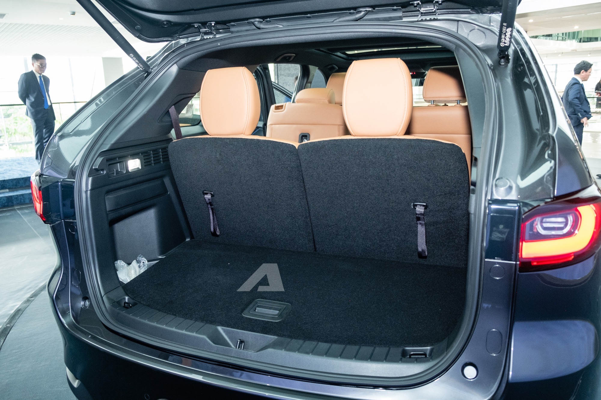 Khoang nội thất là điểm nhấn với ghế da Nappa, ghế lái chỉnh điện 10 hướng nhớ 2 vị trí. Hàng ghế trước có làm mát và sưởi, hàng ghế sau có cửa gió riêng. Xe sở hữu màn hình trung tâm 12,3 inch, màn hình đa thông tin 12,3 inch, hiển thị HUD trên kính lái và hệ thống âm thanh 12 loa Bose. Điều hòa tự động 3 vùng độc lập, sạc không dây Qi, chìa khóa thông minh và khởi động nút bấm là những trang bị tiêu chuẩn.
