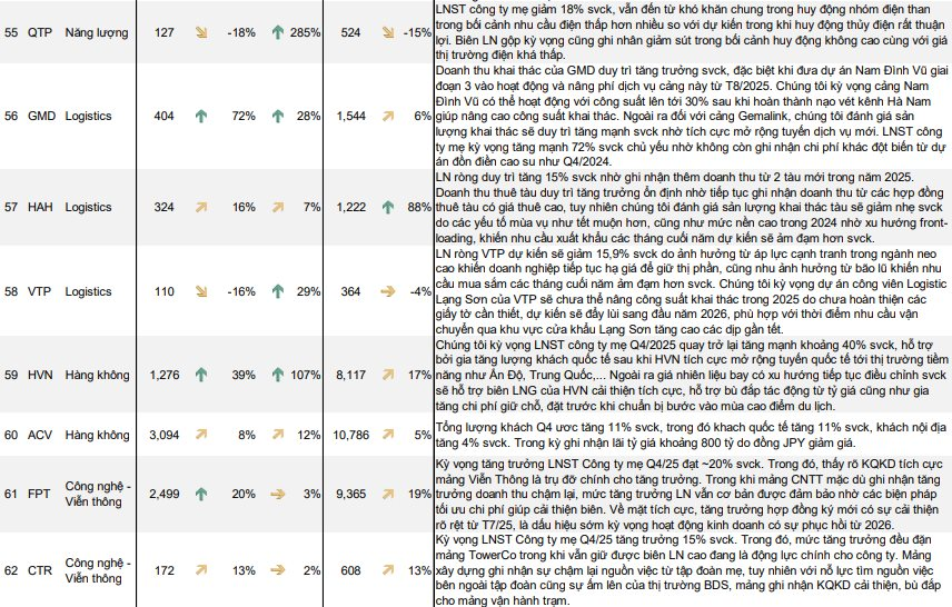 Hòa Phát (mã HPG) cũng dự báo lợi nhuận quý 4 tăng trưởng 57% nhờ nhu cầu tiêu thụ tích cực, sản lượng của doanh nghiệp dự báo tăng trưởng 29% svck. Chủ yếu đến từ việc hoàn thành phân kì 2 của DQ2, đóng góp vào mức tăng trưởng 127% svck của sản lượng HRC trong Q4/25. Bên cạnh đó, biên LN gộp phục hồi 2,5 điểm % nhờ giá NVL giảm mạnh hơn giá thép.