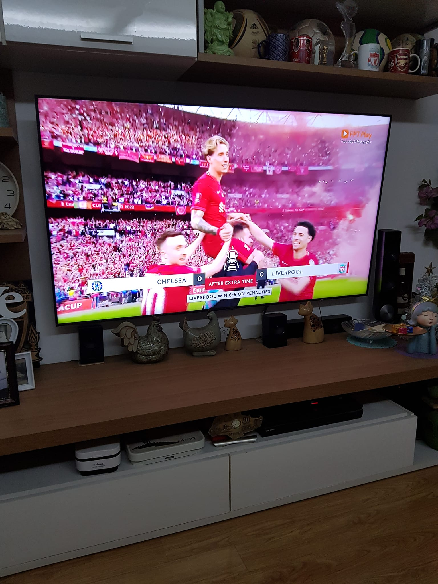 Ở kệ tivi và tủ trang trí, nhiều món đồ nhỏ xinh như khung ảnh gia đình, đồ lưu niệm,... tất cả tạo nên cảm giác ấm cúng.