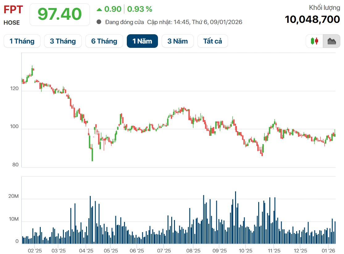 Năm 2025, cổ phiếu FPT đã giảm hơn 26%, trong khi đó giá cổ phiếu FOX tăng gần 4%.