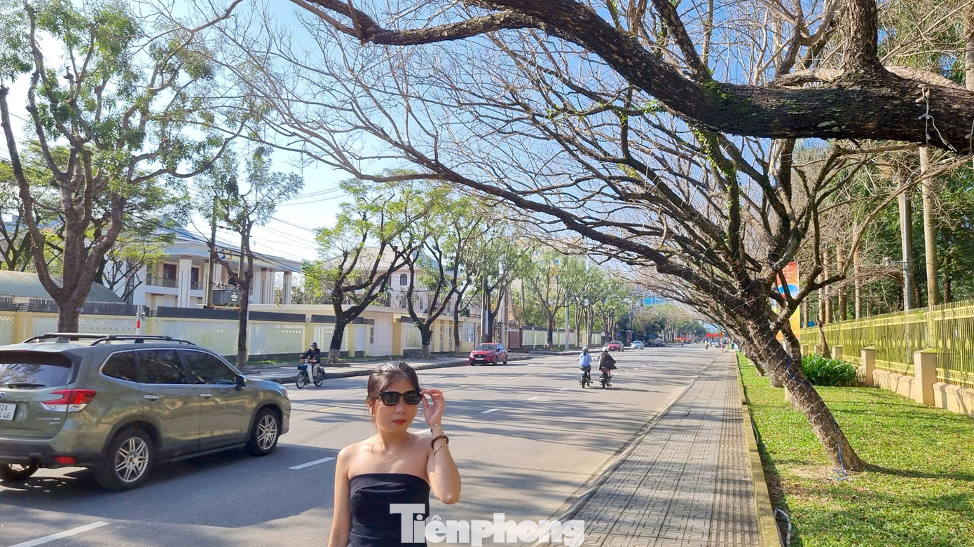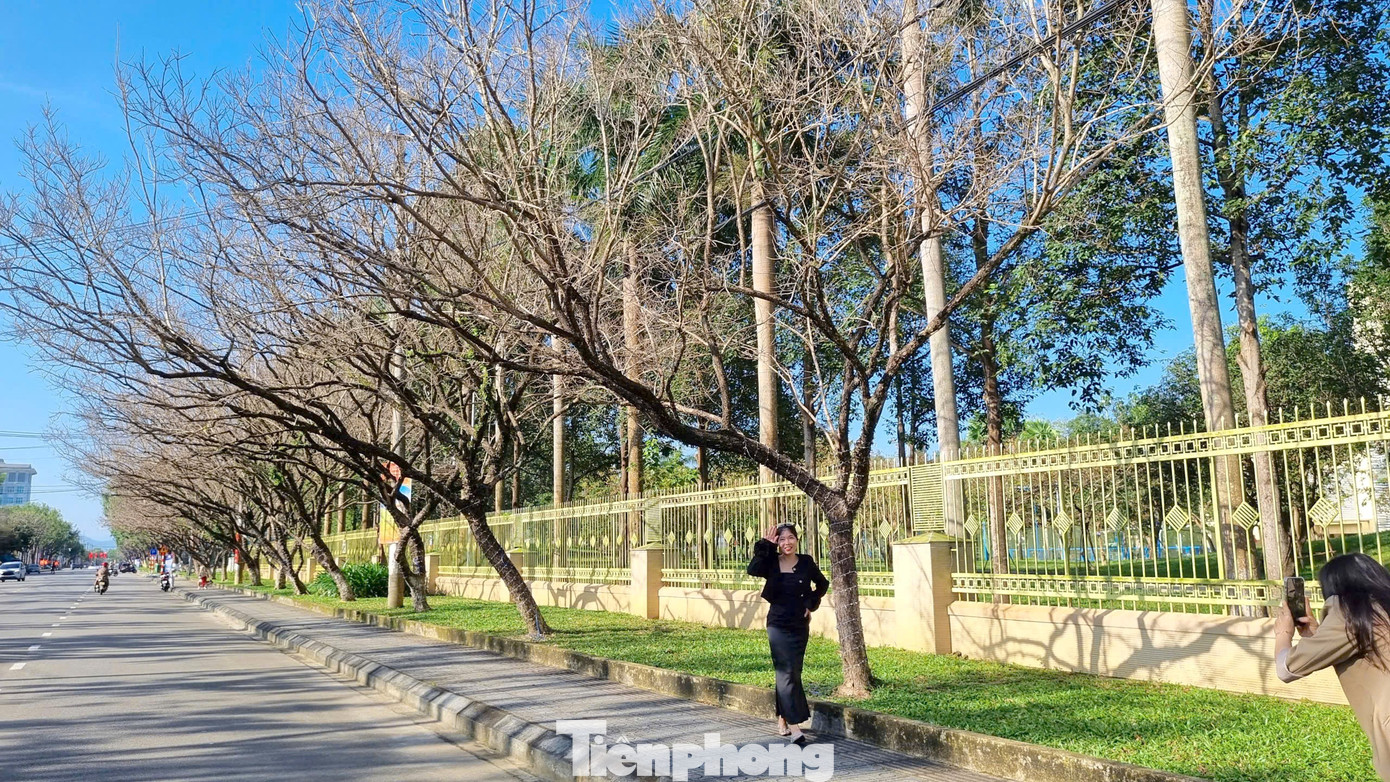 Dưới ánh nắng nhẹ ngày đầu năm mới, hàng sưa ở phường Bàn Thạch, Đà Nẵng vào mùa thay lá đẹp lạ lùng, nhiều người mê mẩn check-in.