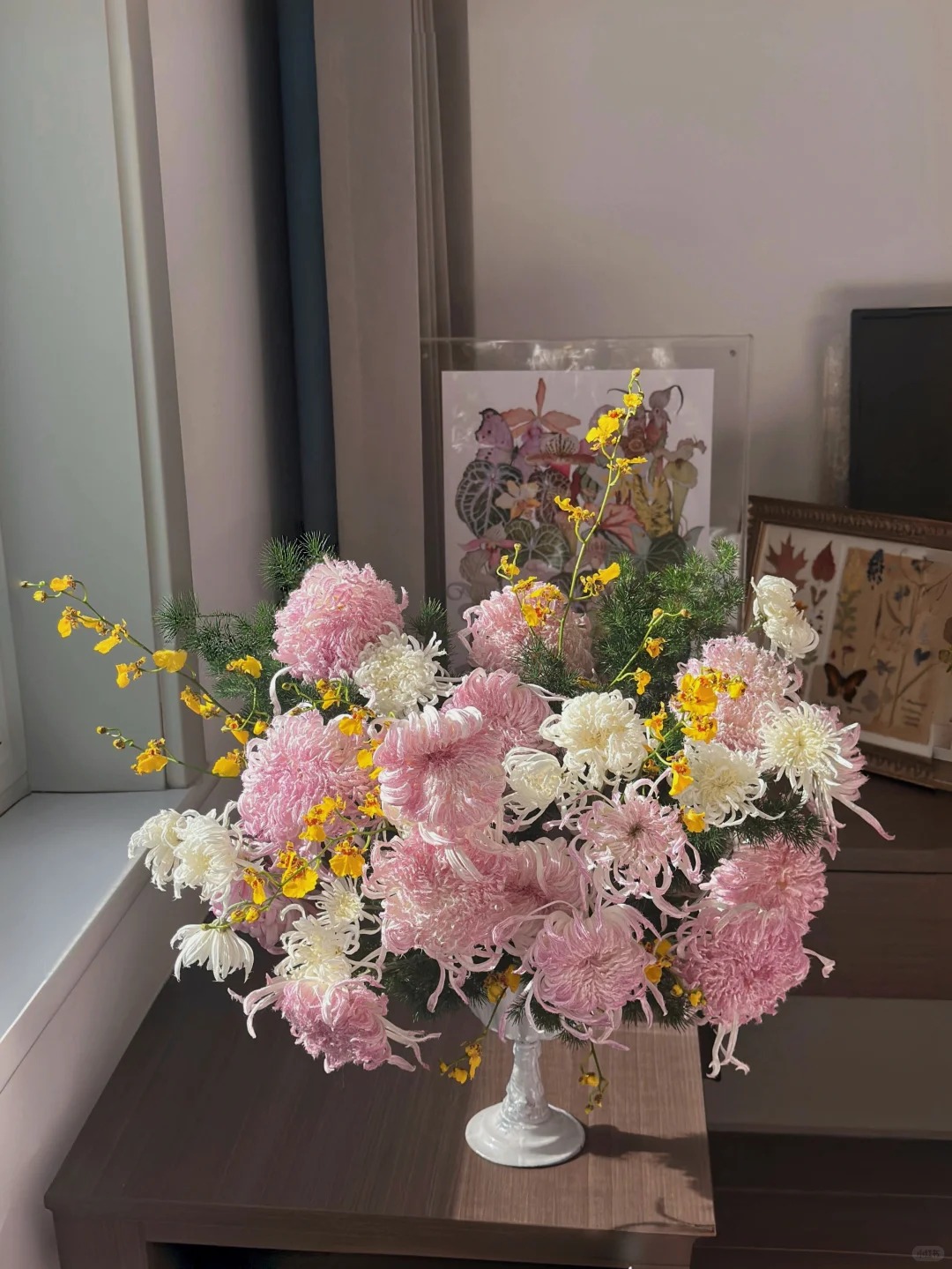 Nhiều chị em ở đây sống ở chung cư hoặc nhà phố, chỉ có ban công kính kín gió chứ không có sân vườn rộng rãi. Việc nuôi dưỡng những dòng đại cúc (cúc bông to) trong điều kiện này quả thực là một thử thách không nhỏ. Dưới đây là những kinh nghiệm xương máu đúc kết được sau hai mùa hoa, đặc biệt là với khí hậu mùa đông (tương tự như miền Bắc nước ta dịp giáp Tết), áp dụng cho những chậu hoa thành phẩm tức là loại đã có nụ hoặc chớm nở mua về chưng ngay.